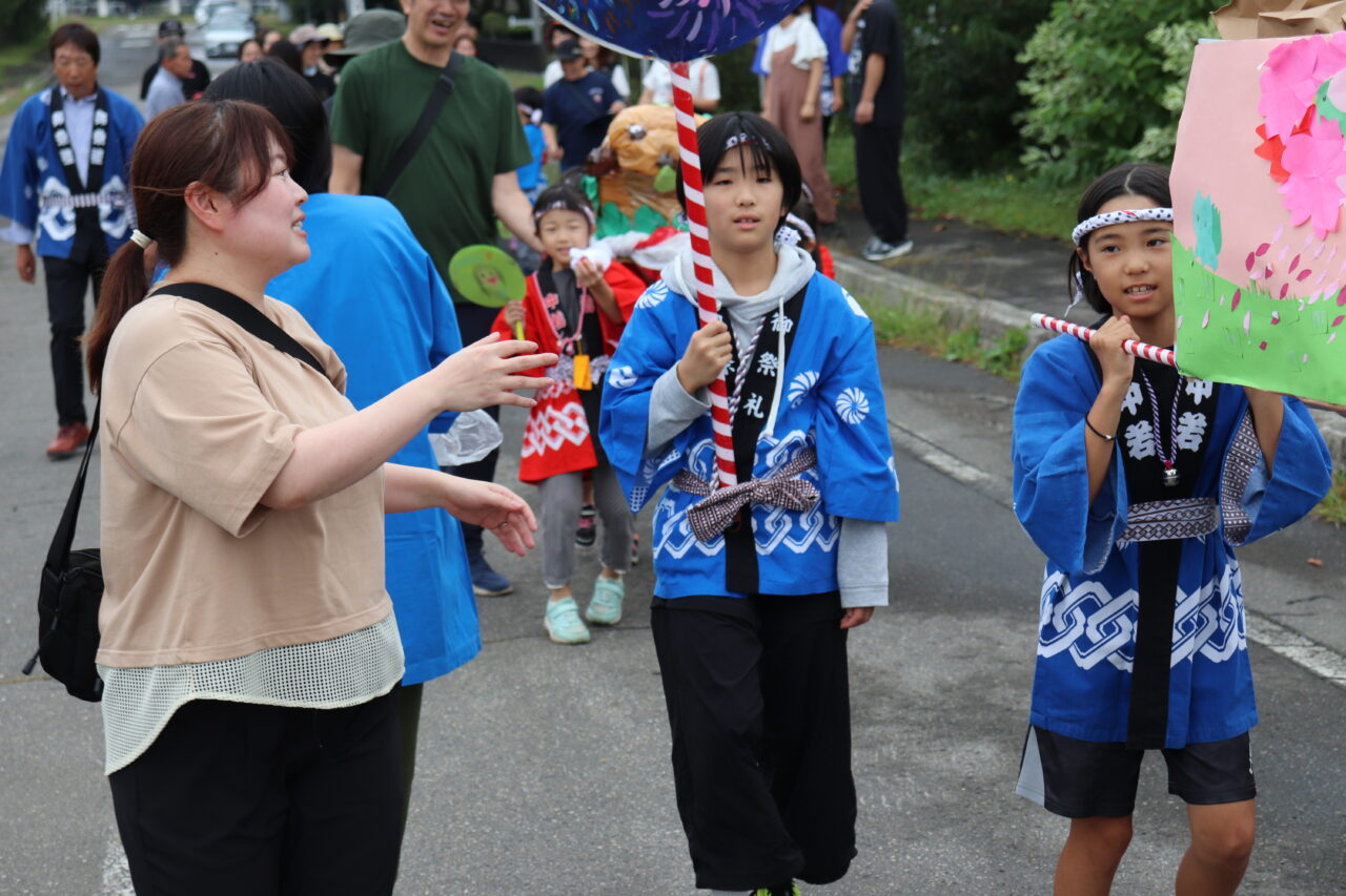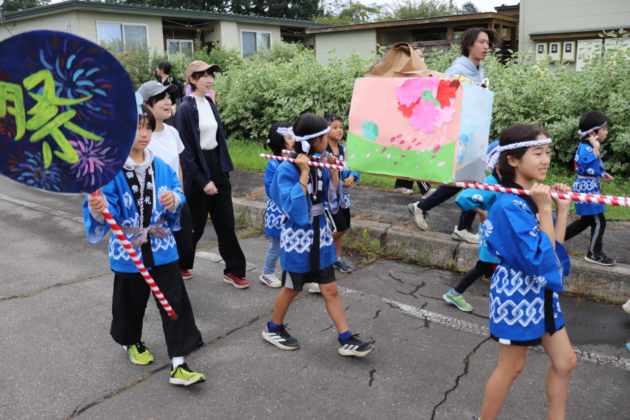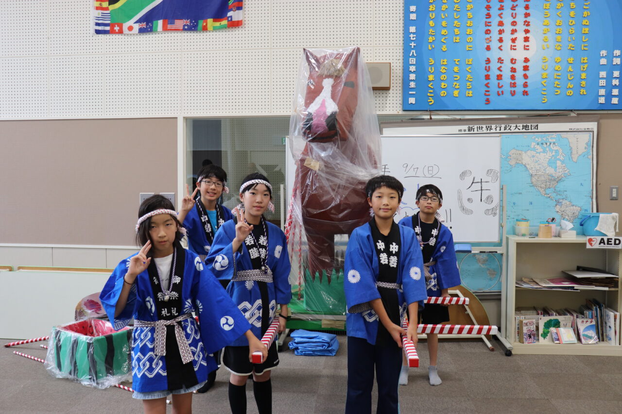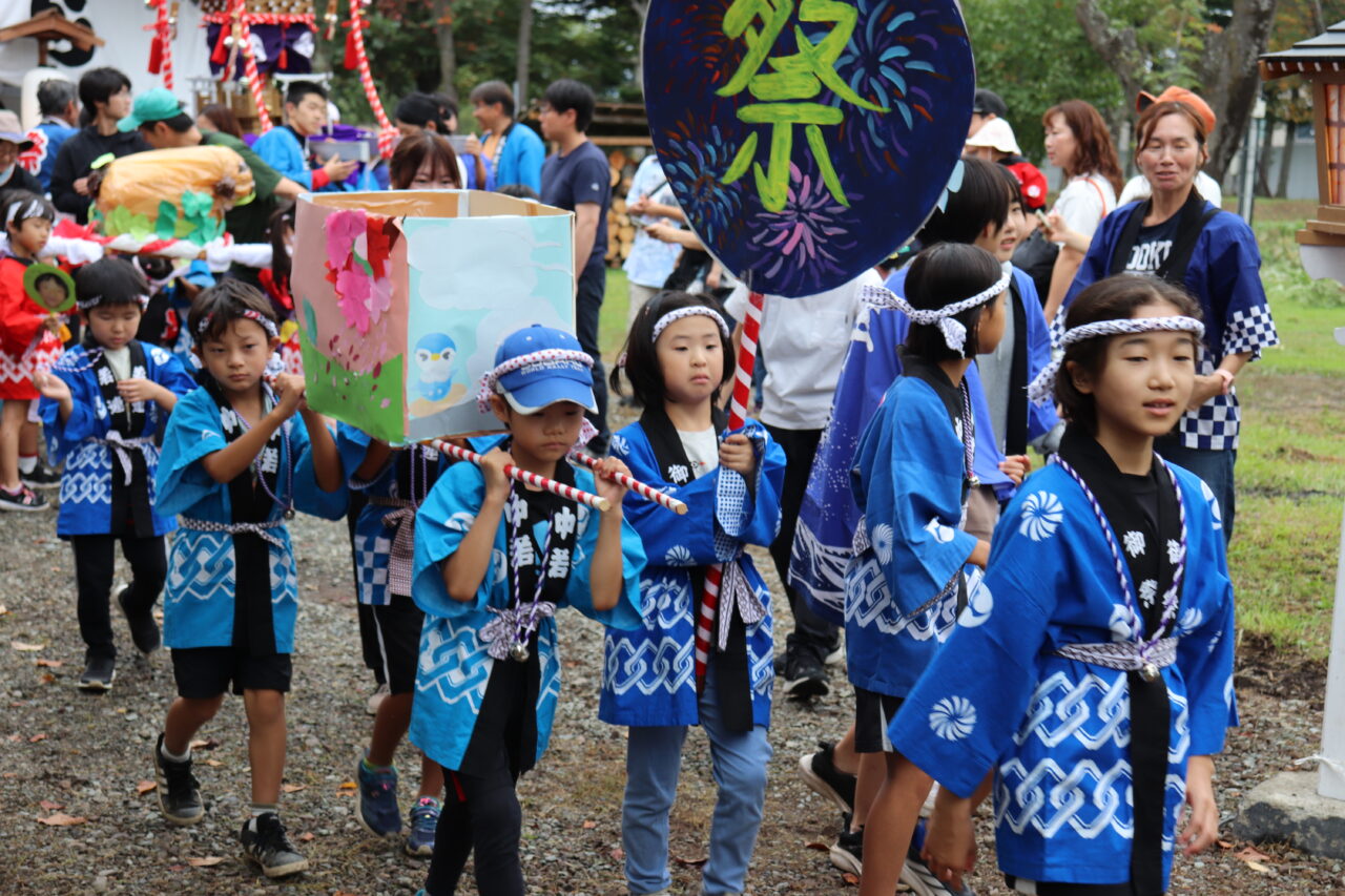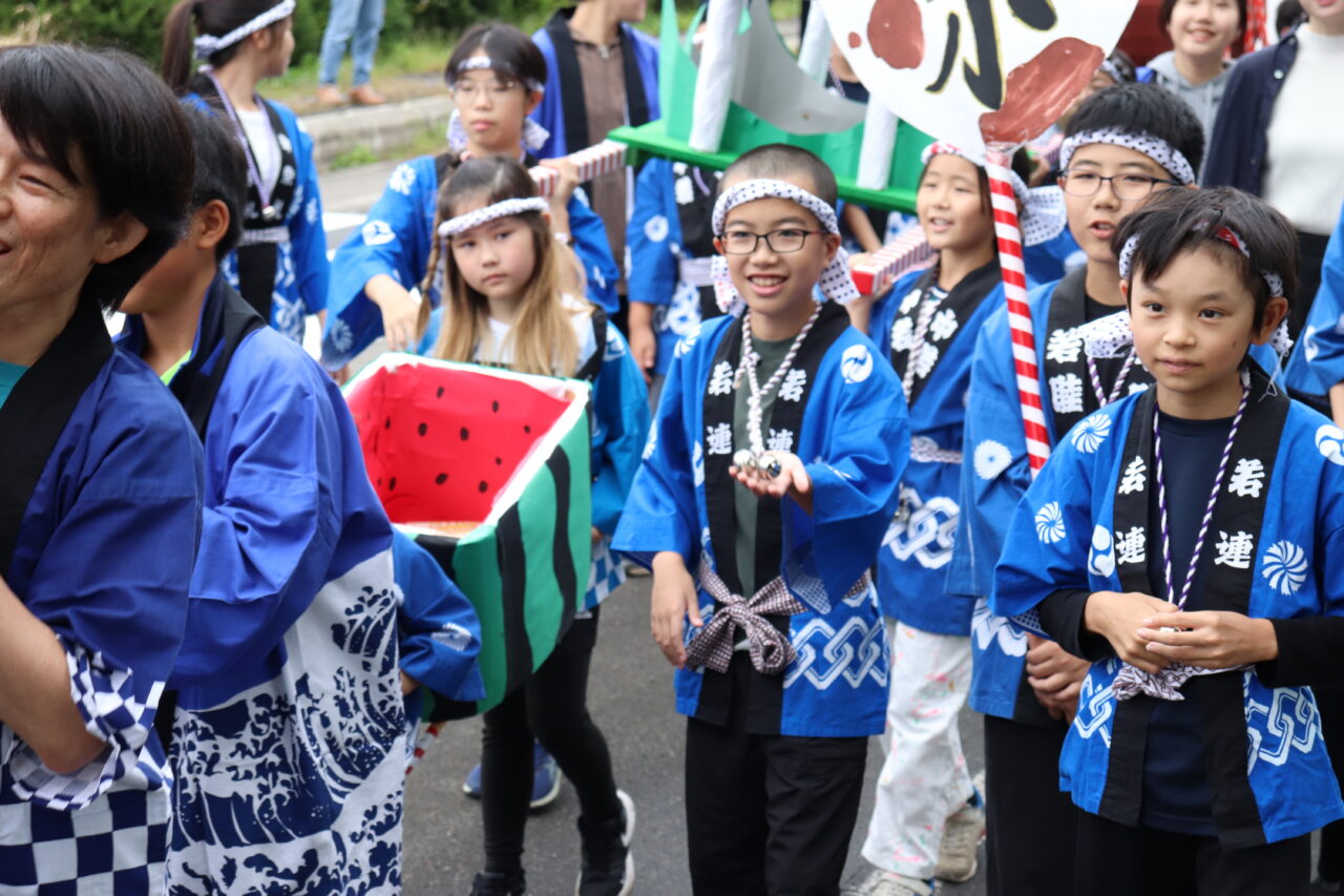 9月7日(日)に瓜幕神社の秋祭りが行われました。保護者や地域の方々にご協力いただき、完成した「子どもみこし」のお披露目です。当日はあいにくの小雨模様で外で担げるのかどうか心配していましたが、みんなの思いが天に通じて雨も止み、予定通りに行うことができました。TVや新聞に取り上げていただいたこともあり、沿道には瓜幕地区の皆さんが大量のお菓子を持って待っていて下さり、おみこしと同行しているお菓子箱はすぐに満杯になってしまいました∑(゚Д゚;) すぐにリヤカーへと運び出しますが、そのリヤカーですらも満杯にΣ(oдΟ;) 急遽校長先生の自家用車を出動させると、車一杯にお菓子の山が積み上がりました(≧∀≦) 後で神社の総代長の方に聞いたのですが、これだけたくさんの方々が集まったのは初めてだったそうで、子どもたちが地域を活性化させ、子どもたちのため、学校のためにと、地域の方々が協力して下さる瓜幕地区の素晴らしいスパイラルを改めて実感しました!子どもたちの顔には笑顔がたくさん溢れ、心地よい疲れと週明け火曜日に配られる大量のお菓子への期待感と共に、子どもたちは帰路につきました。子どもたちはもちろんのこと、地域・保護者の方々にとっても、心に残る思い出となりました。ご協力いただいた地域・保護者の皆さん、本当にありがとうございました(*≧∀≦*)
