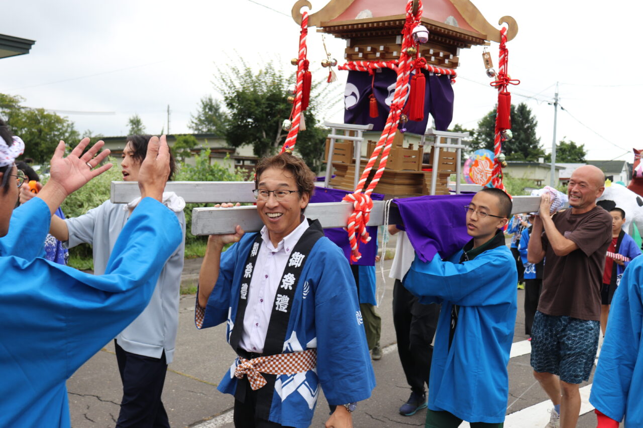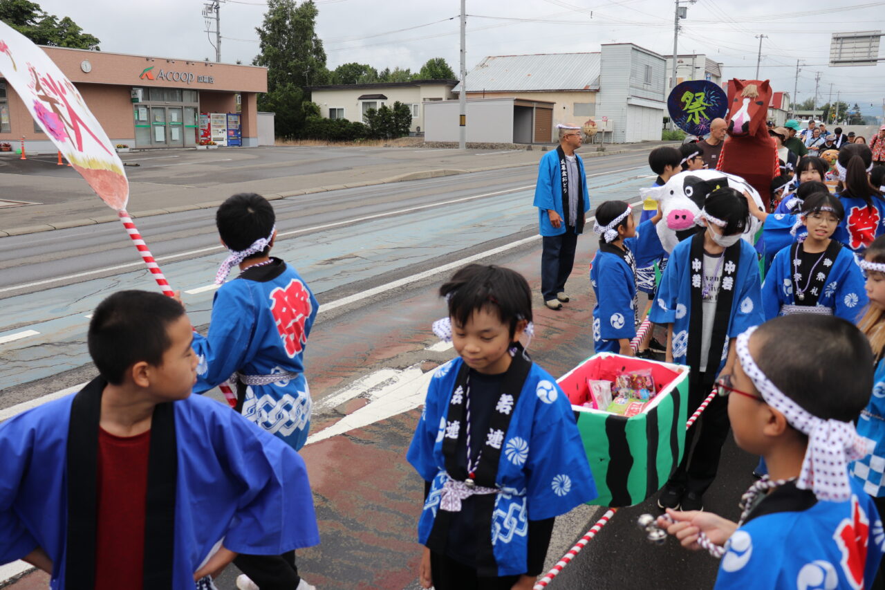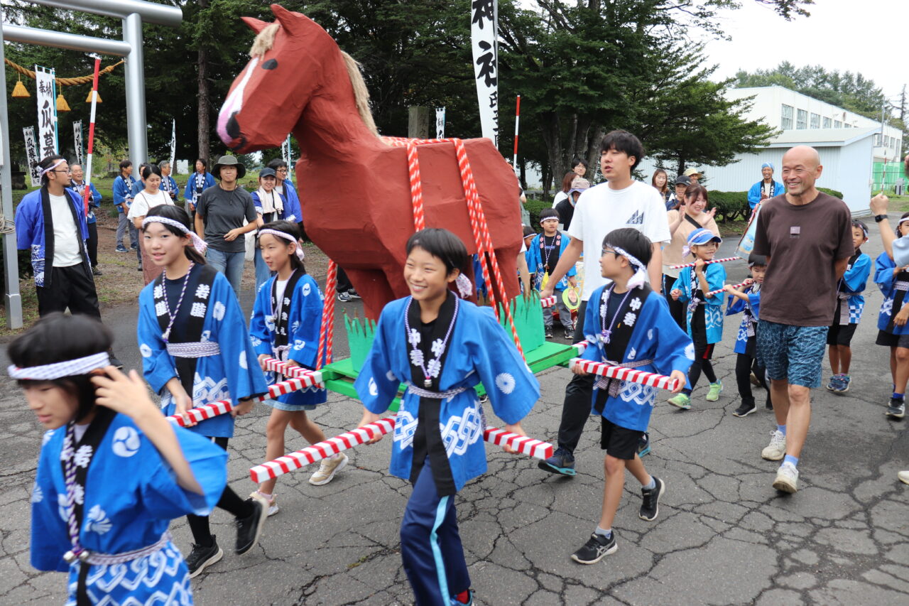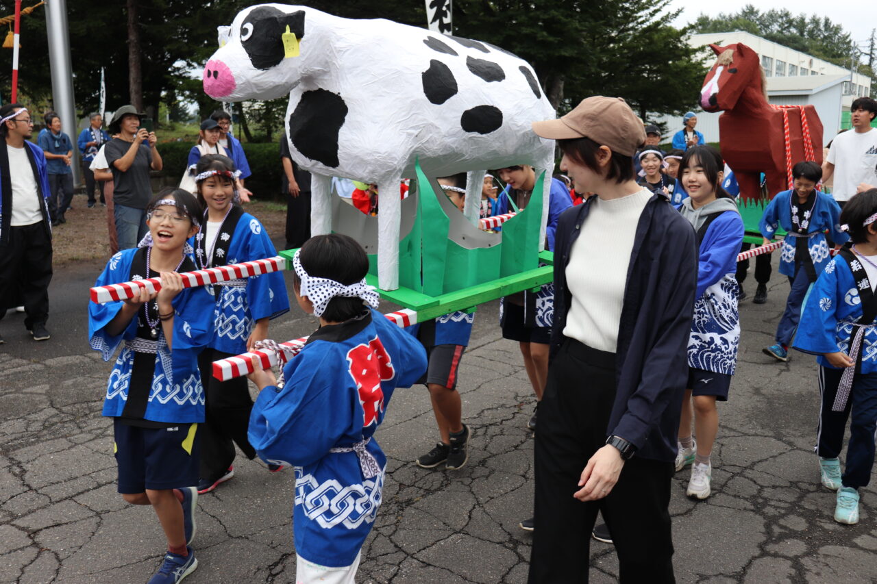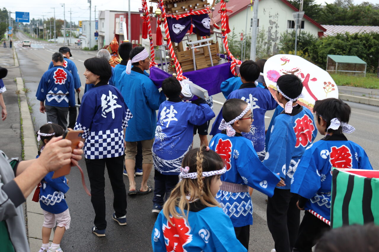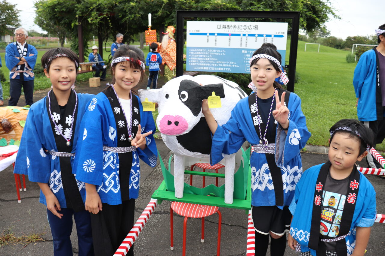 9月7日(日)に瓜幕神社の秋祭りが行われました。保護者や地域の方々にご協力いただき、完成した「子どもみこし」のお披露目です。当日はあいにくの小雨模様で外で担げるのかどうか心配していましたが、みんなの思いが天に通じて雨も止み、予定通りに行うことができました。TVや新聞に取り上げていただいたこともあり、沿道には瓜幕地区の皆さんが大量のお菓子を持って待っていて下さり、おみこしと同行しているお菓子箱はすぐに満杯になってしまいました∑(゚Д゚;) すぐにリヤカーへと運び出しますが、そのリヤカーですらも満杯にΣ(oдΟ;) 急遽校長先生の自家用車を出動させると、車一杯にお菓子の山が積み上がりました(≧∀≦) 後で神社の総代長の方に聞いたのですが、これだけたくさんの方々が集まったのは初めてだったそうで、子どもたちが地域を活性化させ、子どもたちのため、学校のためにと、地域の方々が協力して下さる瓜幕地区の素晴らしいスパイラルを改めて実感しました!子どもたちの顔には笑顔がたくさん溢れ、心地よい疲れと週明け火曜日に配られる大量のお菓子への期待感と共に、子どもたちは帰路につきました。子どもたちはもちろんのこと、地域・保護者の方々にとっても、心に残る思い出となりました。ご協力いただいた地域・保護者の皆さん、本当にありがとうございました(*≧∀≦*)