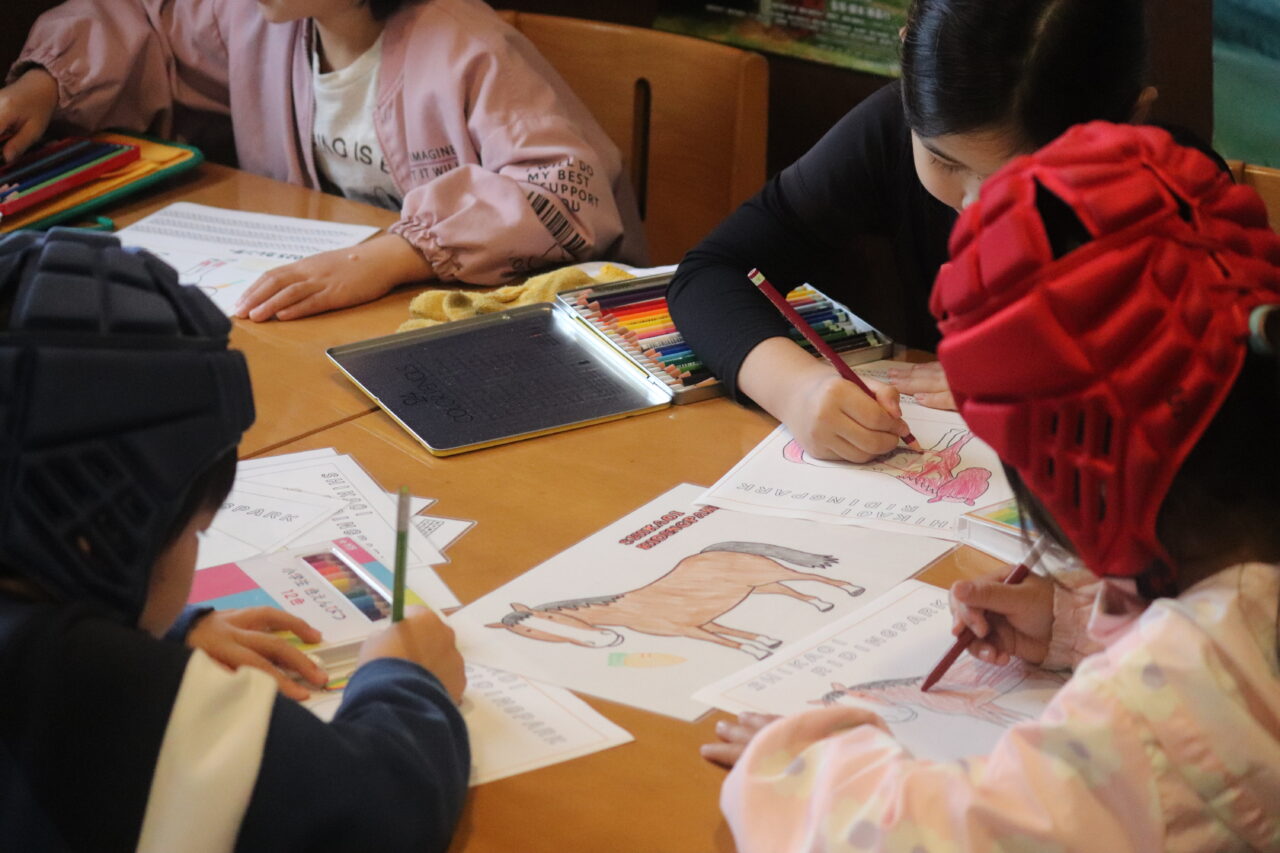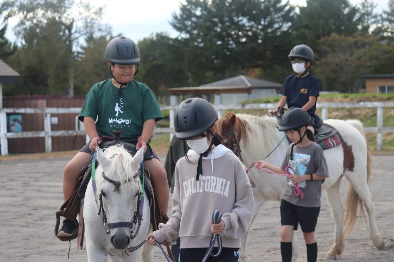 9月22日(月)に今年度2度目の乗馬クラブを行いました。すっかり慣れた様子で颯爽と馬に跨り、手綱捌きもお手のものといったところの中高学年の子どもたち。見ていてどこか安心感を覚えるほどの乗馬技術になっています。低学年は乗馬に加えて馬のカレンダー作りも体験させていただきました。既成概念に囚われないカラフルな色使いによる馬の色塗りにはただただ感心するばかり♪( ´▽`) 先日の子ども神輿でも馬をモチーフにしたように、瓜っ子にとって馬の存在がいかに身近であるかを再確認することができました。