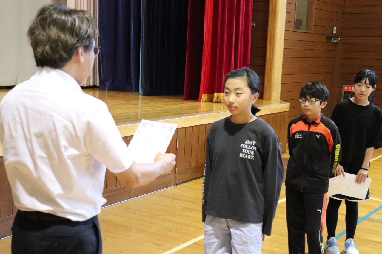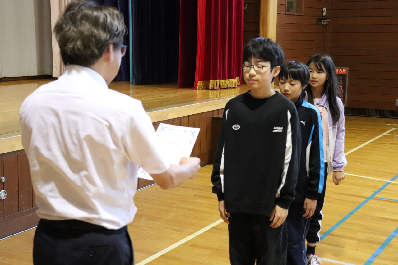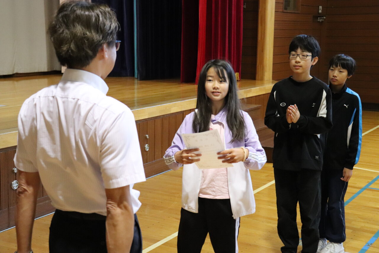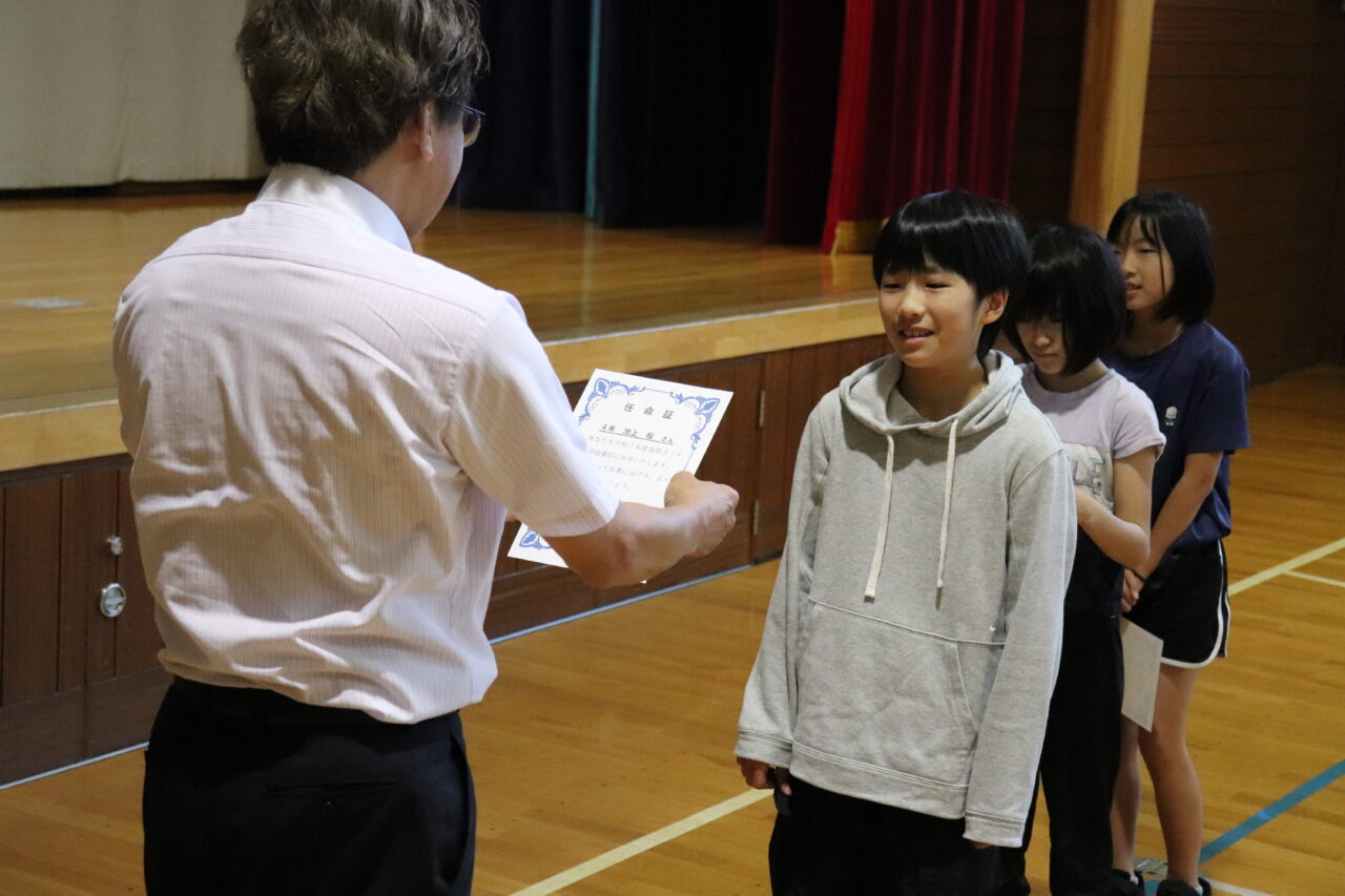 10月6日(月)の全校朝会において、後期児童会および学級役員の認証式が行われました。前期とは役員も一新され、新たな気持ちで学校・学級のために力を尽くしてくれることを期待しております。新役員の皆さん、頑張ってください!