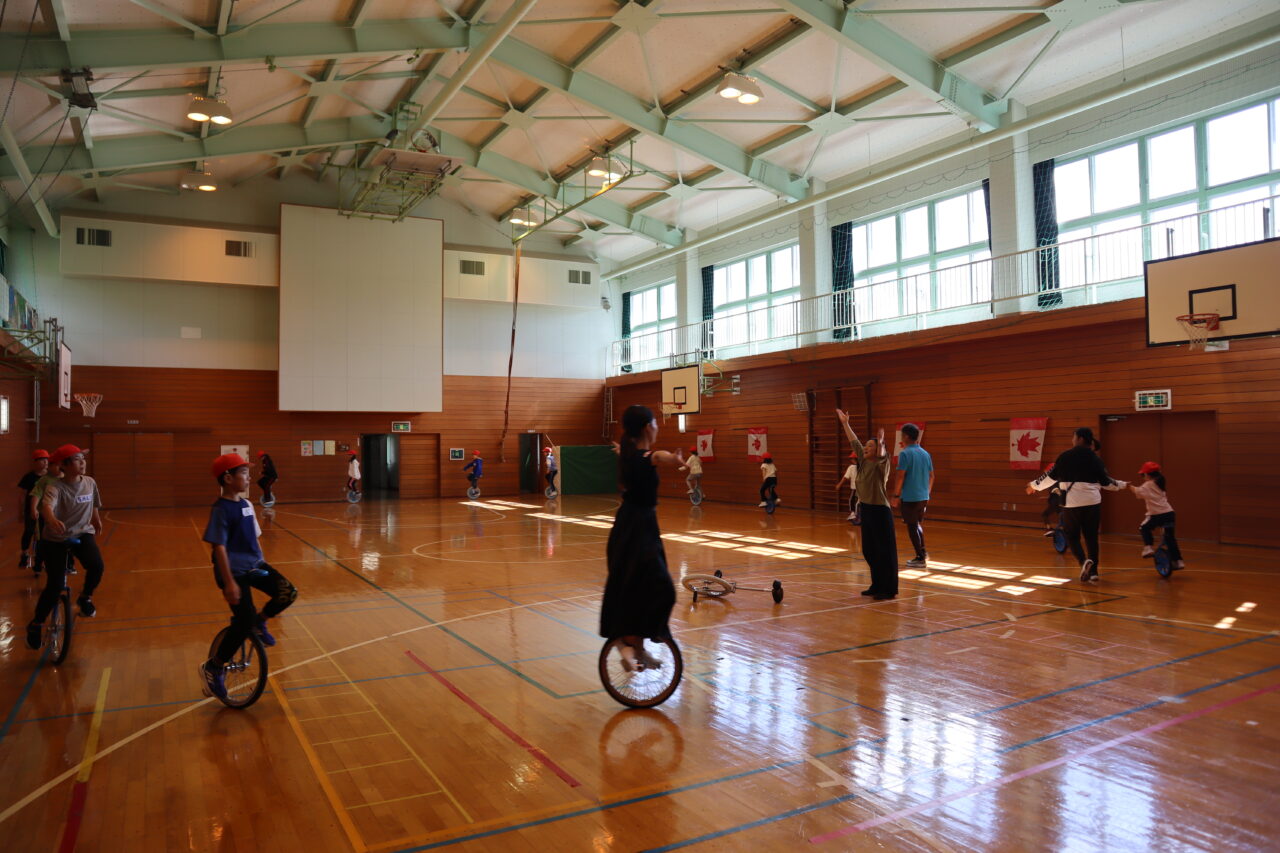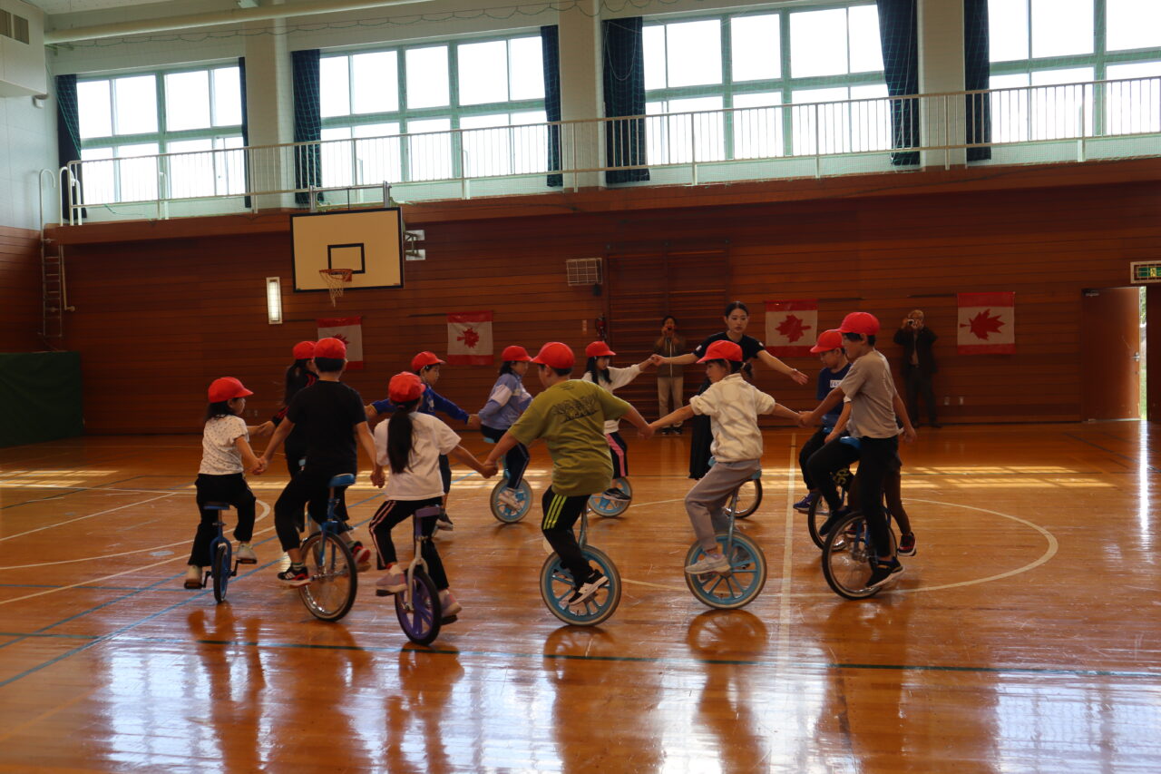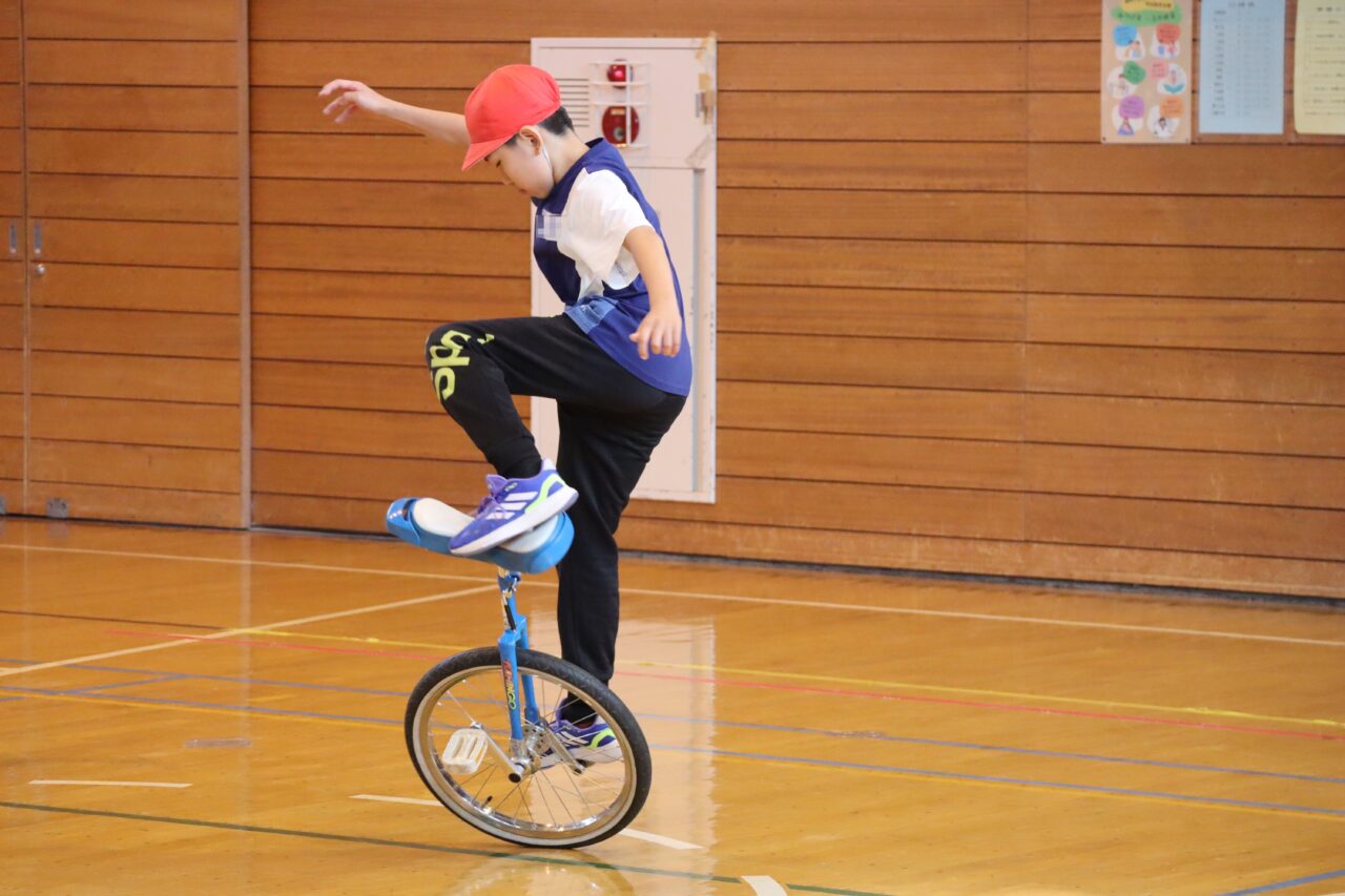 一輪車講習会(通明小) 投稿日 2025年10月14日 著者 通明小学校 カテゴリー 通明小学校 令和7年10月9日(木)、ベルマーク教育助成財団のご協力のもと、一輪車講習会を行いました。プロの演技を鑑賞した後、一輪車に乗る際の注意点などを解説していただき、子どもたちも一緒に練習しました。大人数で行う大技や、初めて挑戦する技もありましたが、みんな果敢に挑戦し、見事成功させていました。子どもたちは大いに刺激を受け、これからも挑戦する気持ちを持ち続けてくれることでしょう。大変貴重な経験となりました、ありがとうございました。