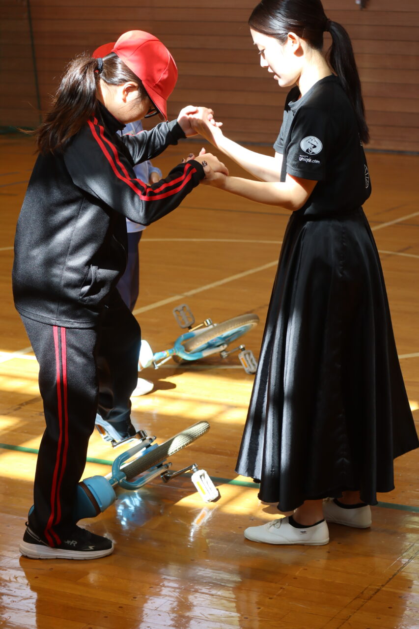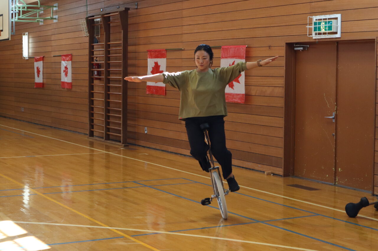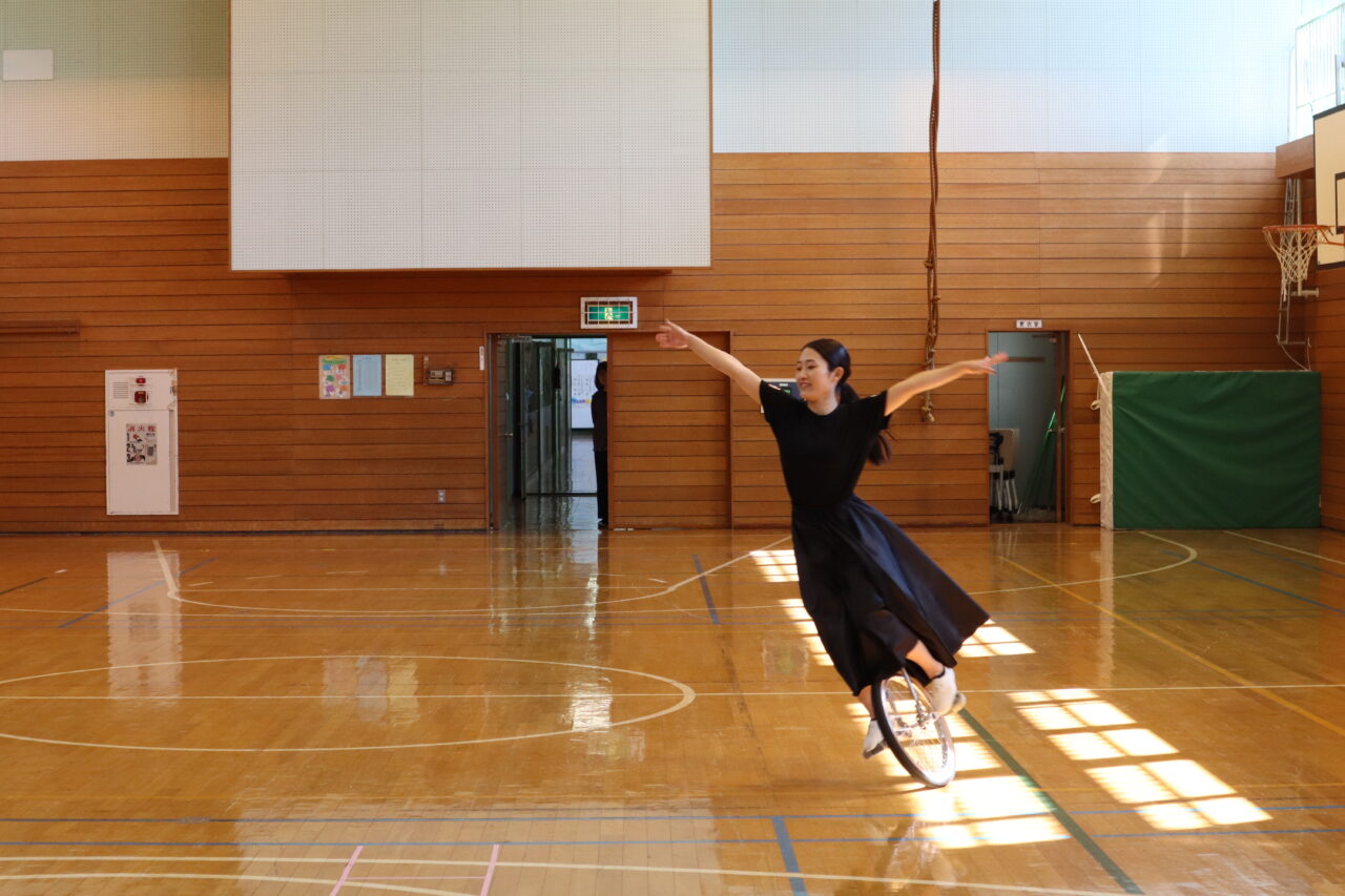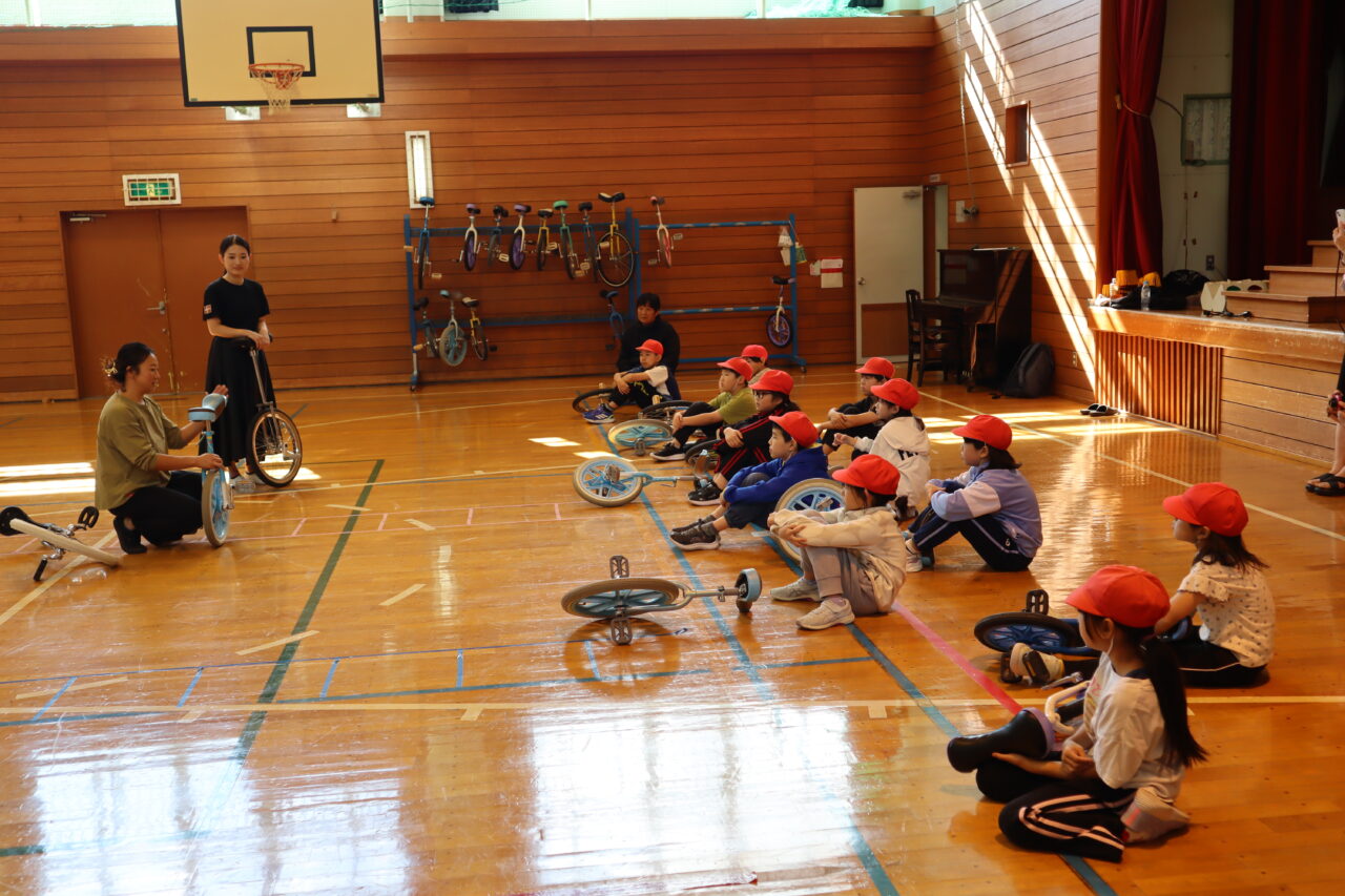 一輪車講習会(通明小) 投稿日 2025年10月14日 著者 通明小学校 カテゴリー 通明小学校 令和7年10月9日(木)、ベルマーク教育助成財団のご協力のもと、一輪車講習会を行いました。プロの演技を鑑賞した後、一輪車に乗る際の注意点などを解説していただき、子どもたちも一緒に練習しました。大人数で行う大技や、初めて挑戦する技もありましたが、みんな果敢に挑戦し、見事成功させていました。子どもたちは大いに刺激を受け、これからも挑戦する気持ちを持ち続けてくれることでしょう。大変貴重な経験となりました、ありがとうございました。