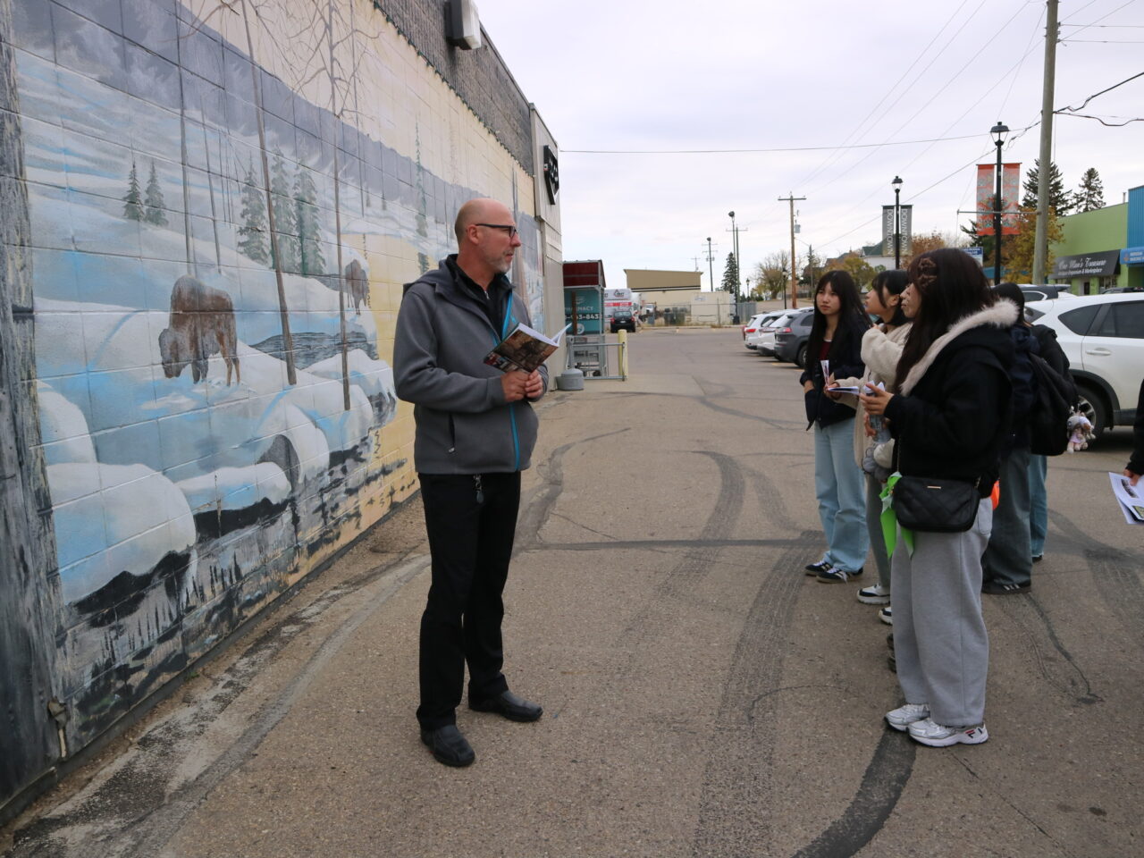 壁画になっている人物は実在した人であり、すべての壁画に歴史的意味がありました。また役場の壁には鹿追町をモチーフにしたものがあり、日本をモチーフにした庭もありました。鹿追町にも「ストニィプレイン通り」があるように、Stony Plainにも鹿追町を感じることができる場所があり、感慨深いものがありましたったようです。