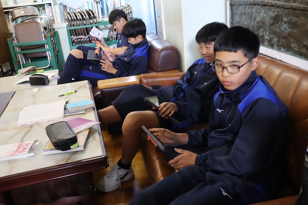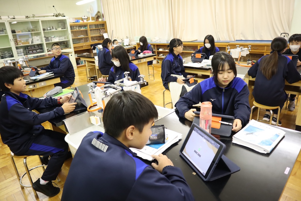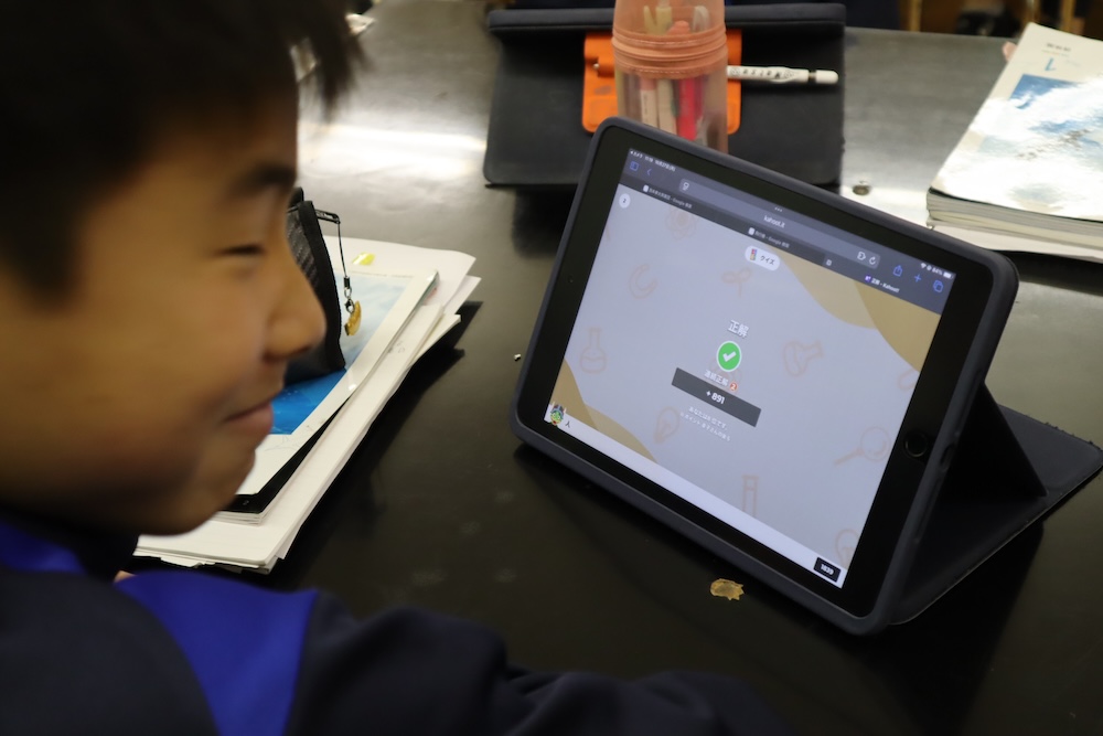 1年生の理科の授業では、基礎・基本の定着を確認。先生がKahoot!でクイズを出題!「これ覚えてるかな?」ドキドキしながら答える生徒たち。「正解!」の声に思わずガッツポーズ。「勉強してないけど、ちゃんと覚えてた〜!」と笑顔がはじける、明るい理科の時間でした。