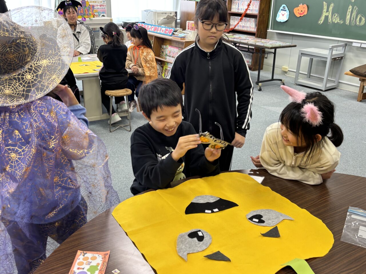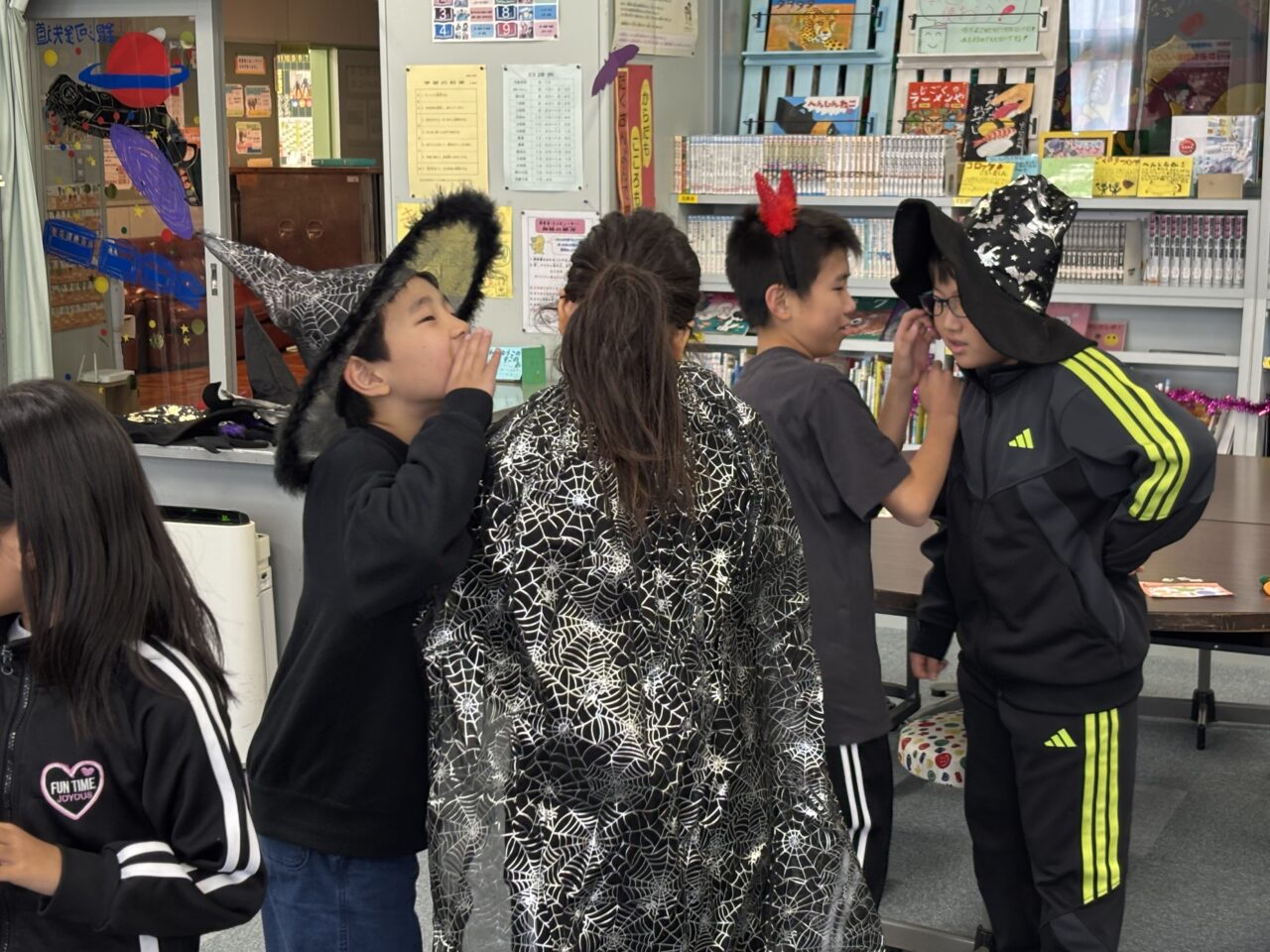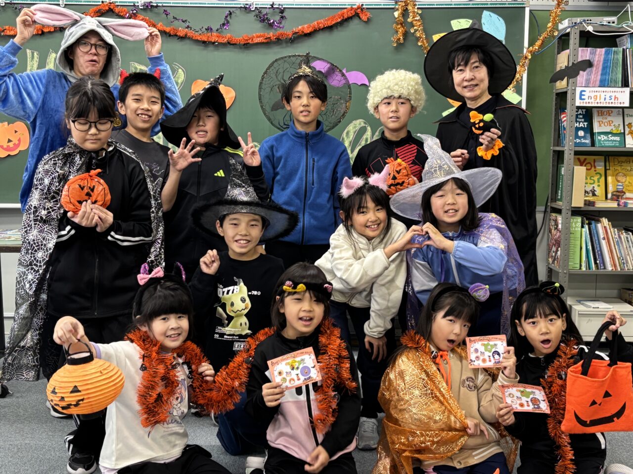 ハロウィーン(通明小) 投稿日 2025年10月28日 著者 通明小学校 カテゴリー 通明小学校 令和7年10月28日(火)の英語の授業で、ハロウィーンを行いました。ハロウィーンの文化について学んだ後、いろいろなゲームをして盛り上がりました。子どもたちは楽しみながら、英語と異文化に触れることができたことでしょう。
