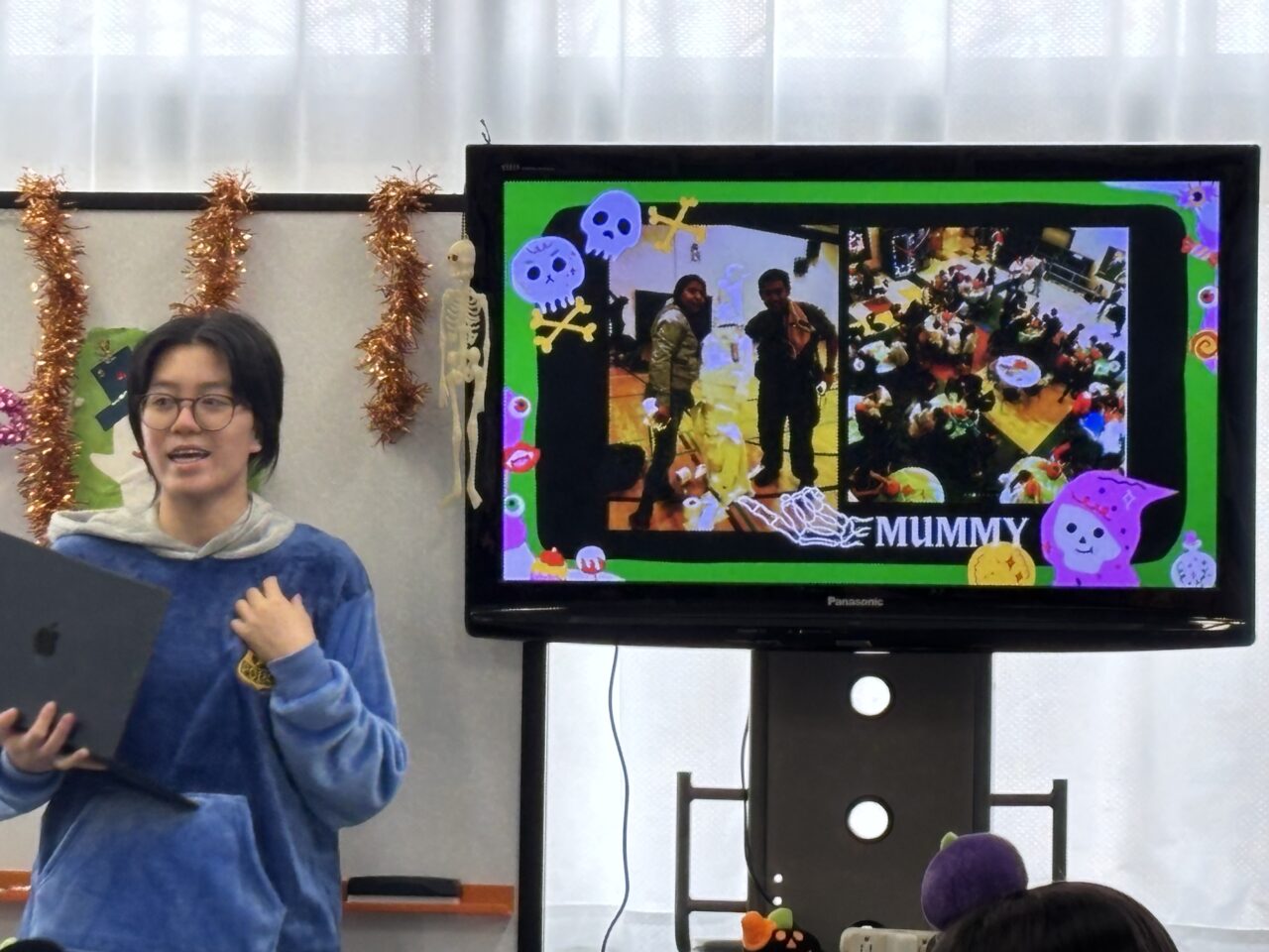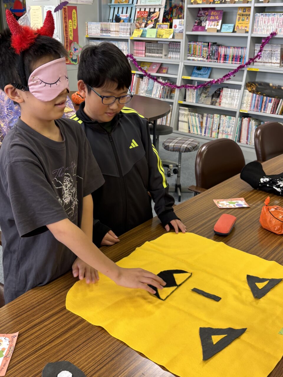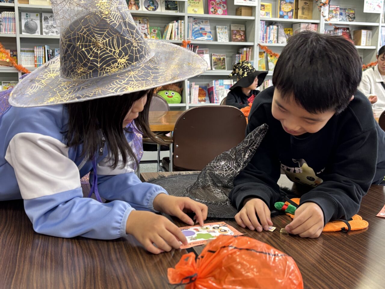ハロウィーン(通明小) 投稿日 2025年10月28日 著者 通明小学校 カテゴリー 通明小学校 令和7年10月28日(火)の英語の授業で、ハロウィーンを行いました。ハロウィーンの文化について学んだ後、いろいろなゲームをして盛り上がりました。子どもたちは楽しみながら、英語と異文化に触れることができたことでしょう。