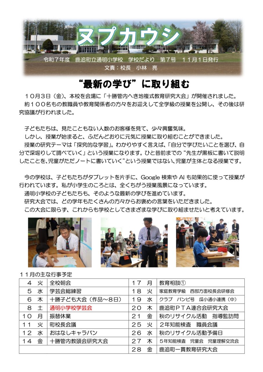 令和7年度学校だより「ヌプカウシ」第7号(通明小)