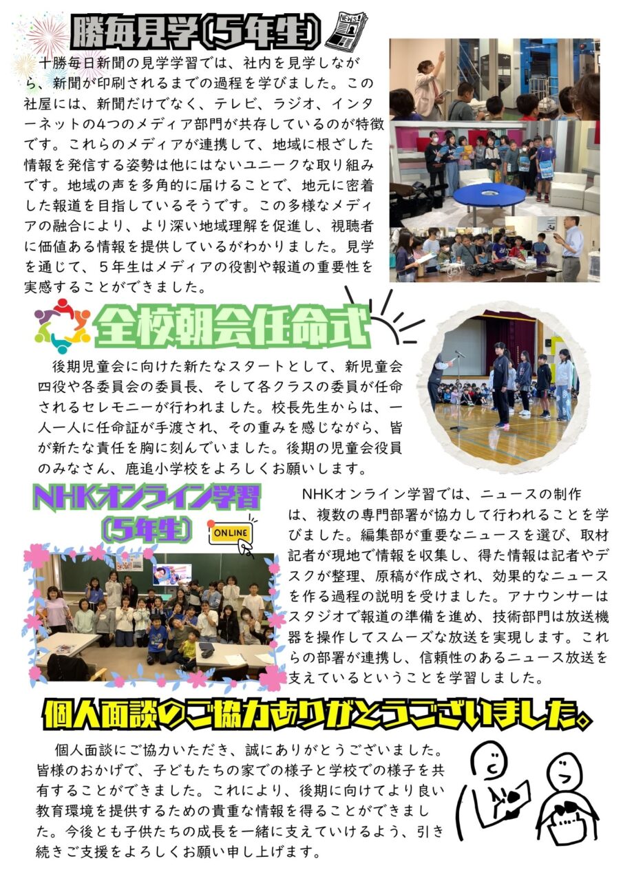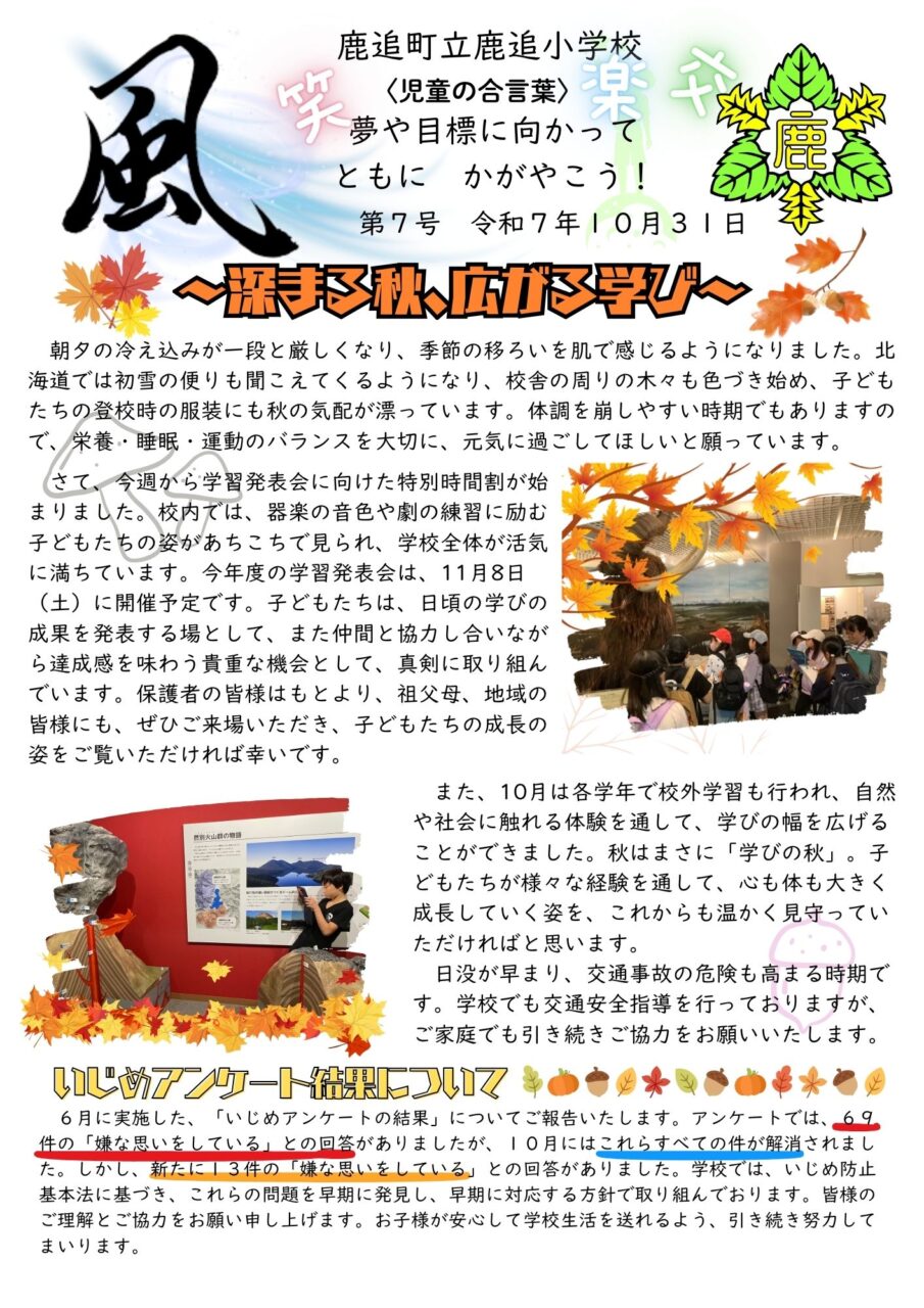 鹿追小学校だより 「風」 第7号
