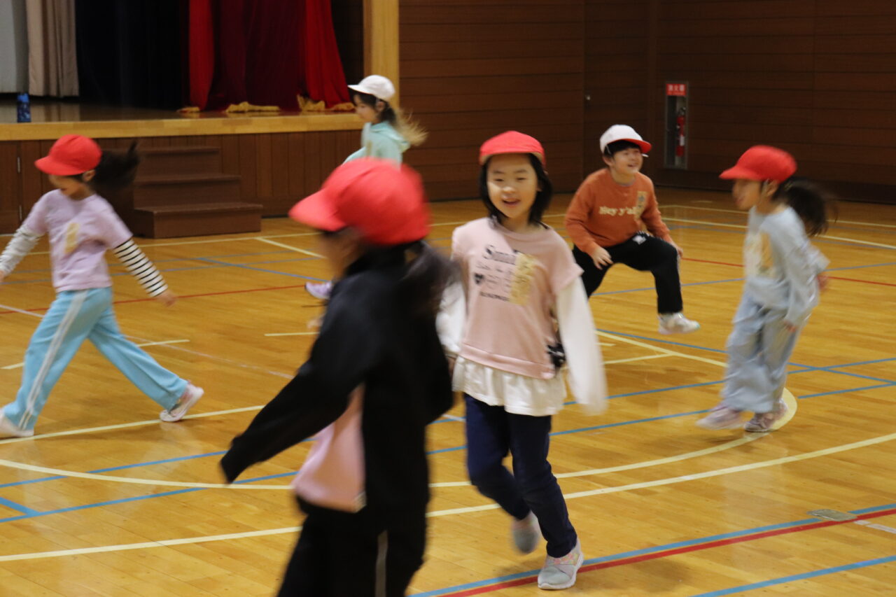 体育館でお互いに仲良くなるためにゲームを交えながら体を動かしています。みんな朝から元気いっぱいですp(^_^)q