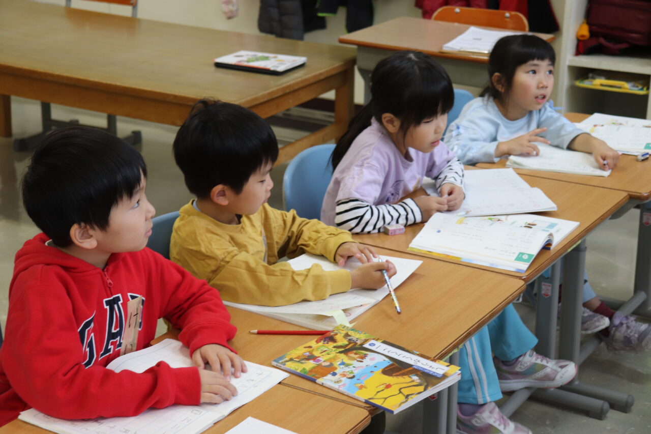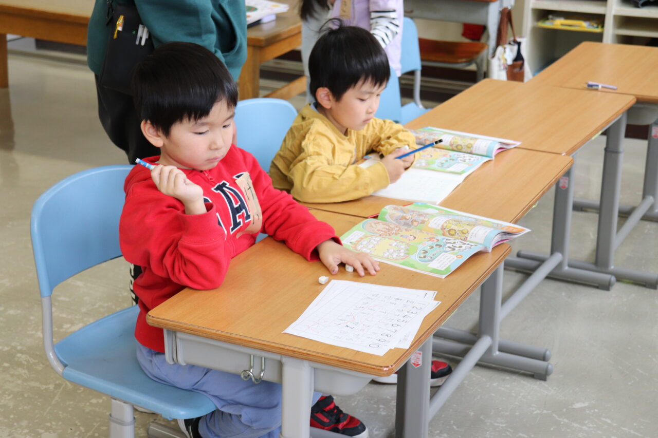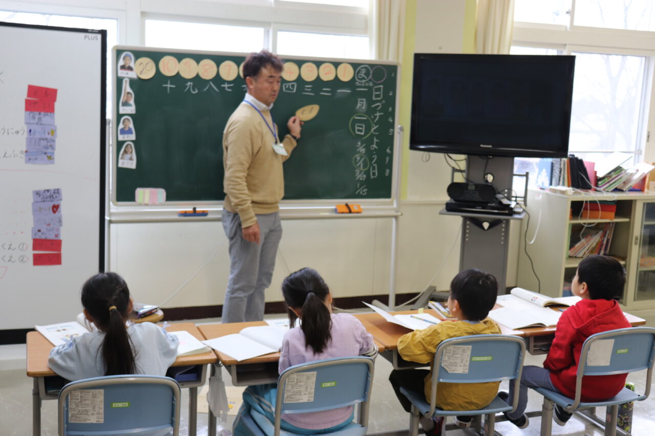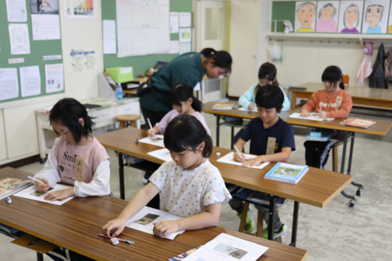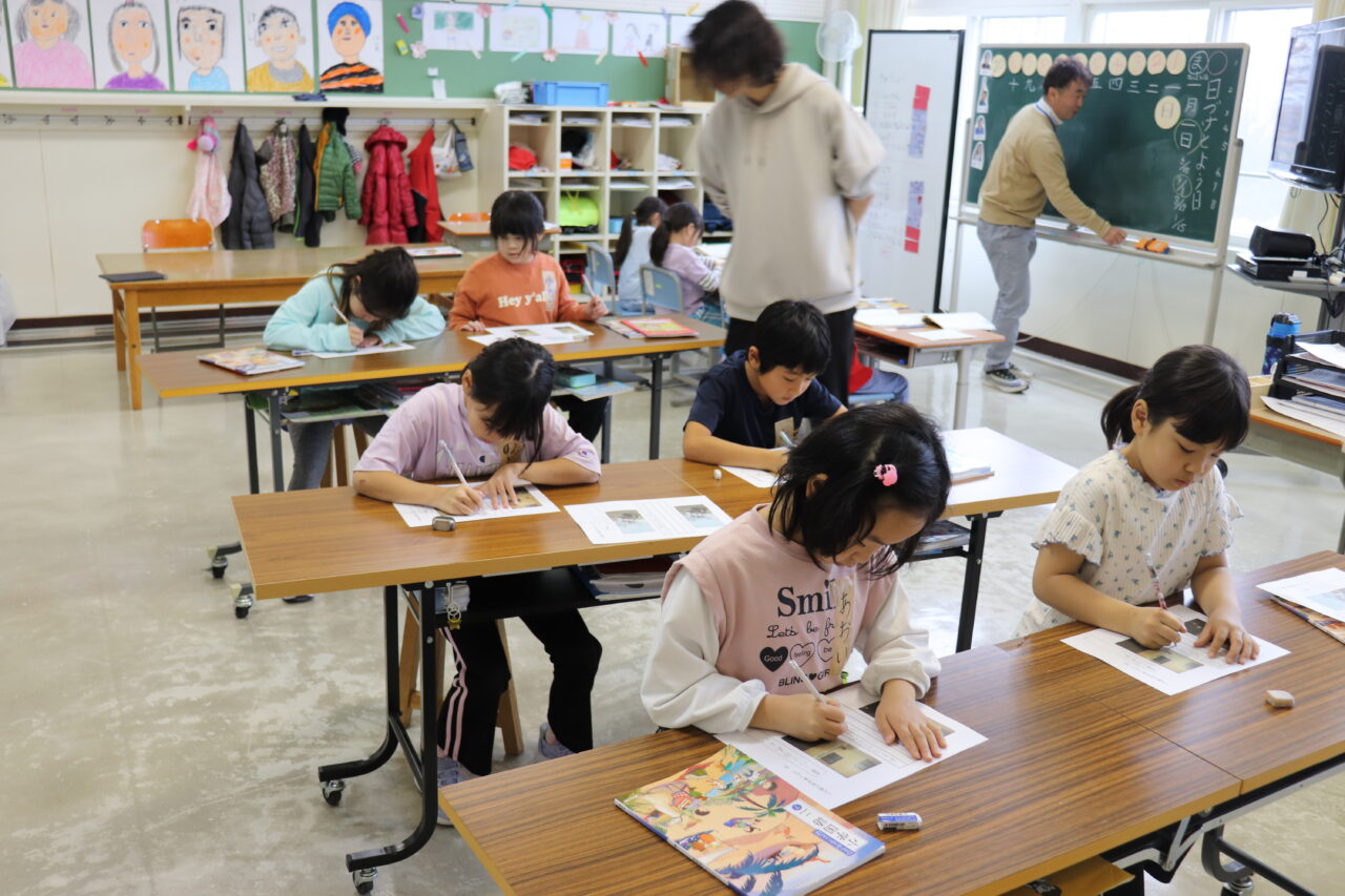 教室に移動して国語と算数の授業です。瓜幕小と通明小のそれぞれの担任が授業を進めました。いつもと違う先生、教室にちょっと緊張気味?いえいえ、そんなことは全く感じられず、みんな一生懸命勉強に取り組んでいます。