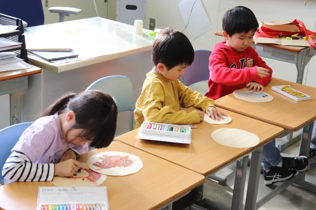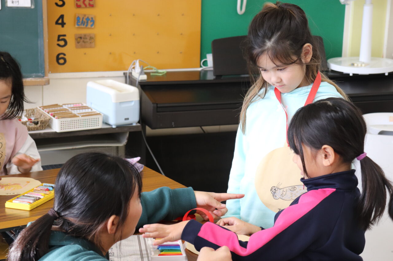 5時間目は図工の勉強。好きな動物を描いてメダルを作りました。「〇〇ちゃん上手〜」とあちこちから聞こえてくるほど、すっかり仲良しになりました♪(๑ᴖ◡ᴖ๑)♪