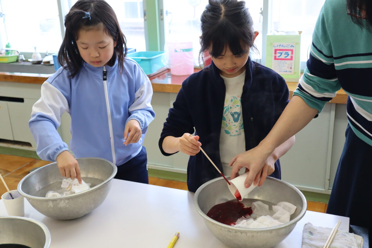 染め物・ぬいぐるみ作り(通明小) 投稿日 2025年11月19日 著者 通明小学校 カテゴリー 通明小学校 令和7年11月19日(水)、クラブ活動で染め物やぬいぐるみ作りを行いました。初めて行う作業でしたが楽しみながら自分だけの作品を作ることができました。この経験を活かし、もの作りの楽しさをこれからも大いに満喫してほしいと願っています。