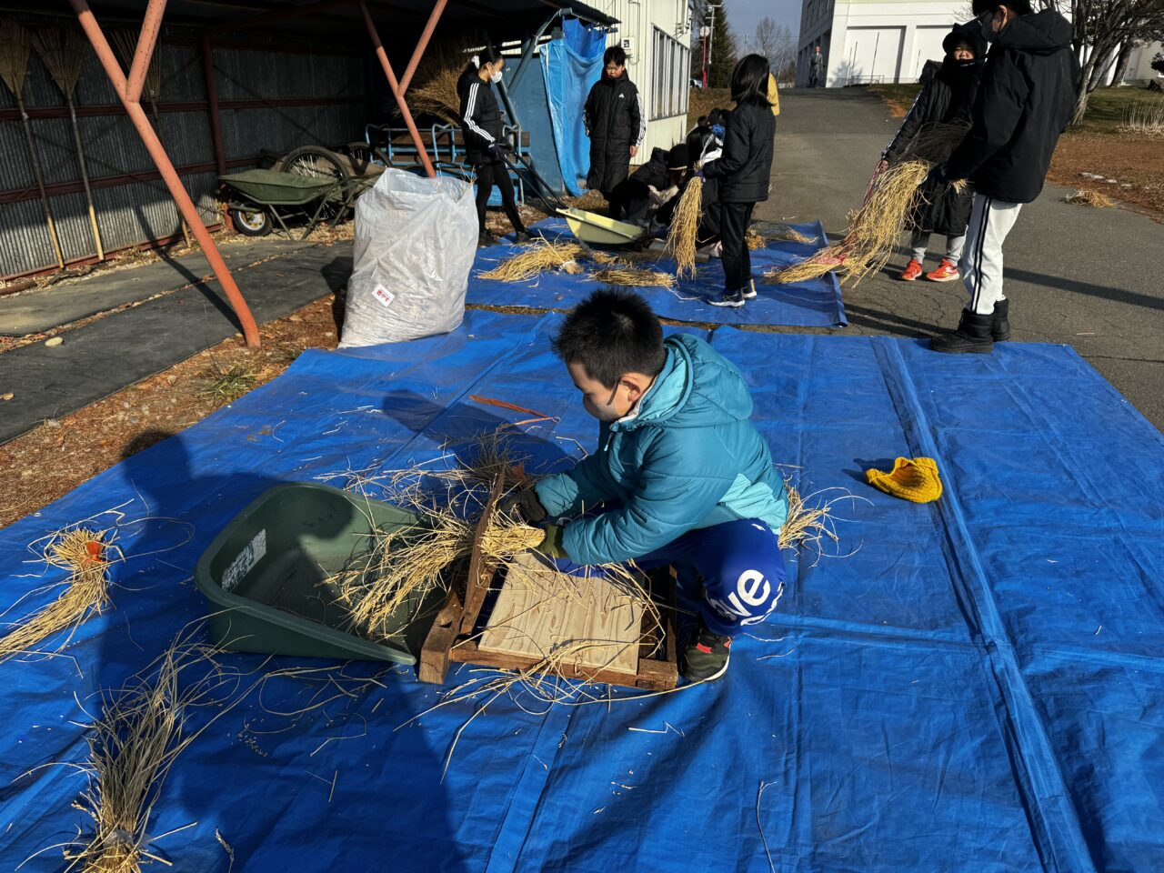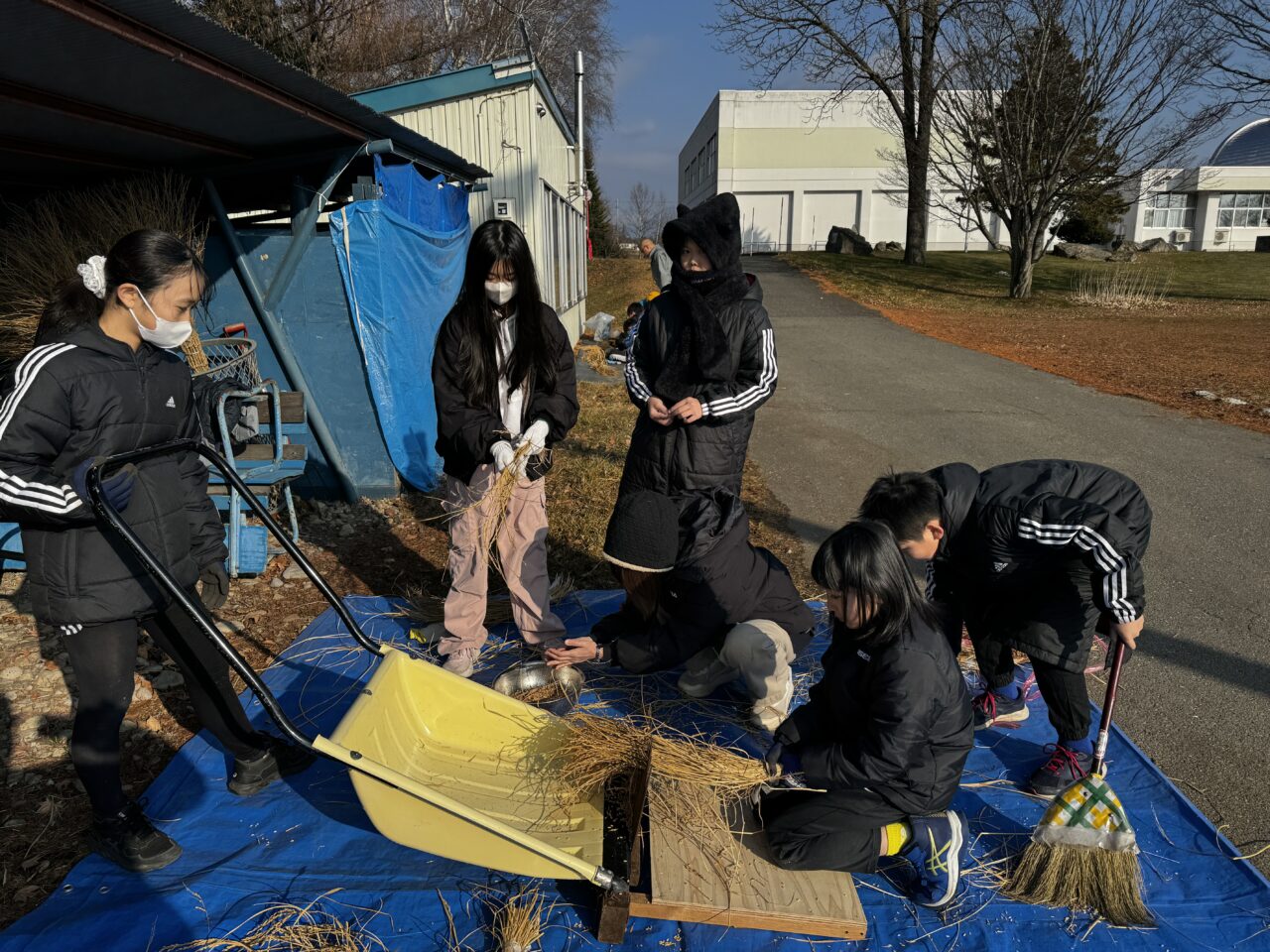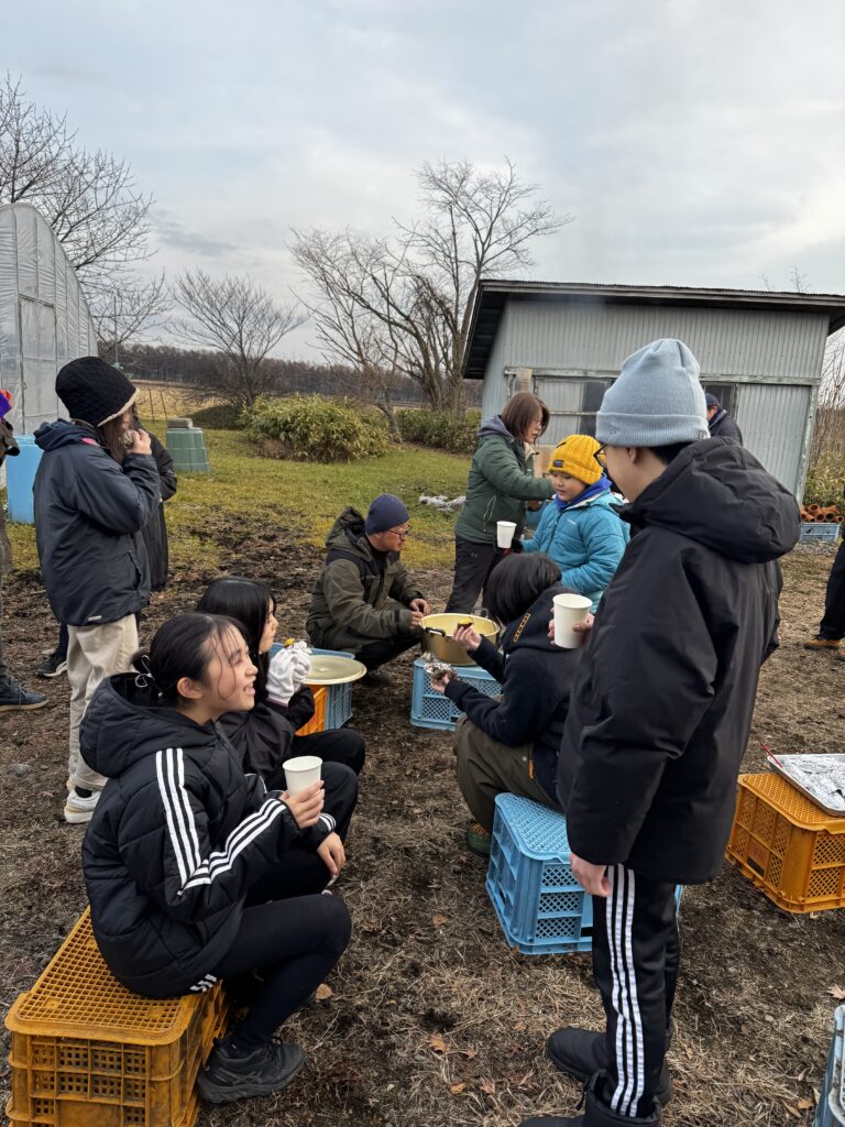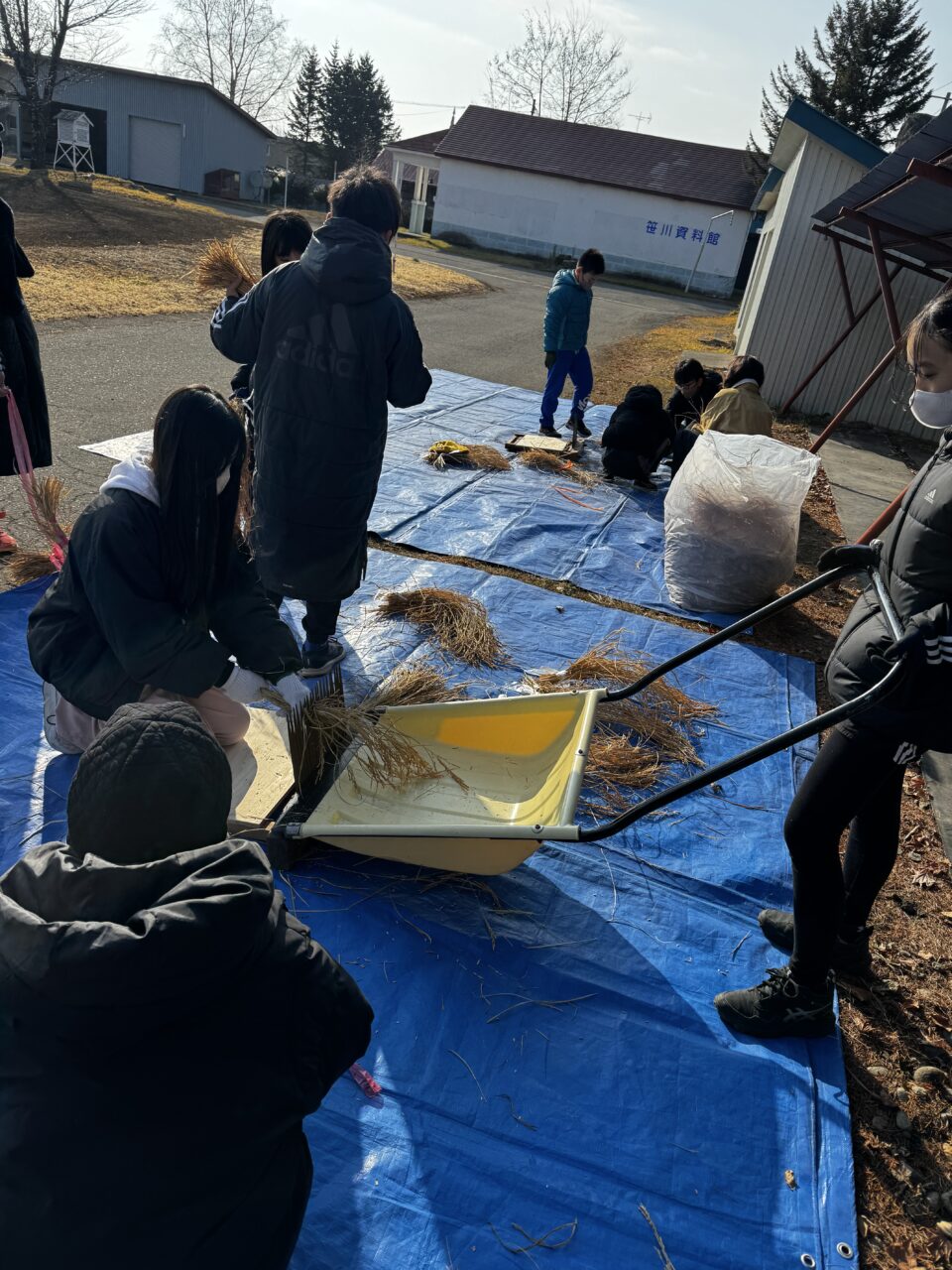 みんなで収穫した稲の脱穀をしました。千ばこぎは新得町の共働学舎さんからお借りしました。束ねた稲を千ばこぎの尖ったところに挟めて引くと、籾殻と稲に分かれます。一人でやるのではなく、みんなで協力し合いながら取り組みました。