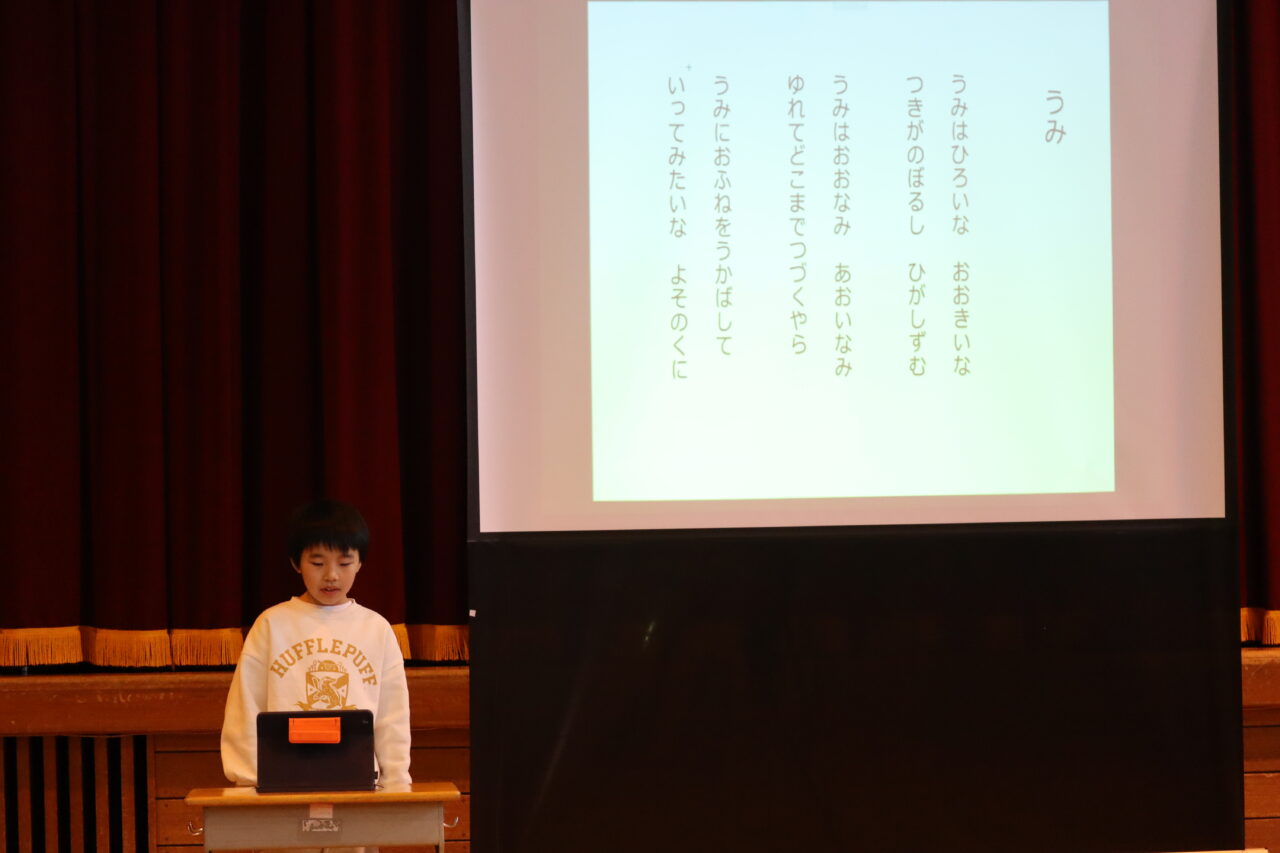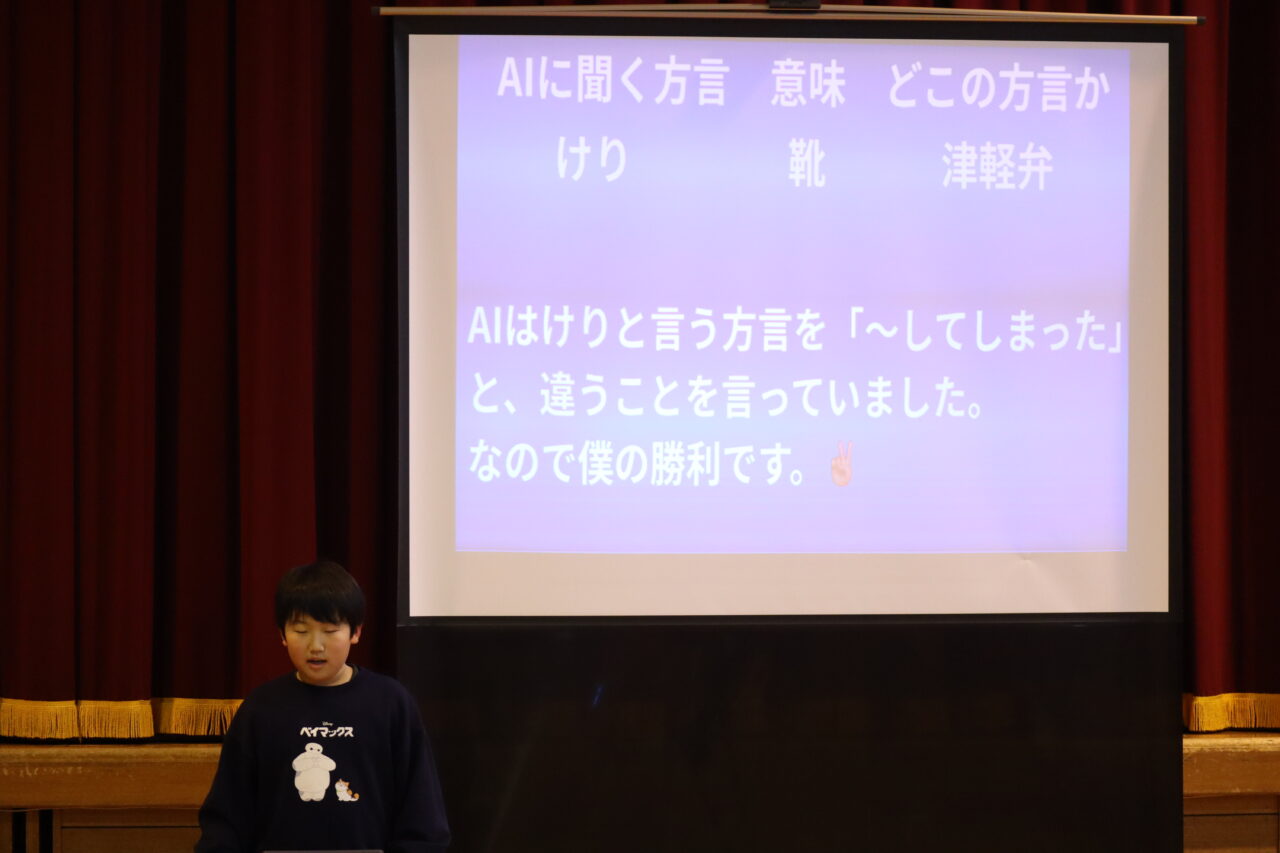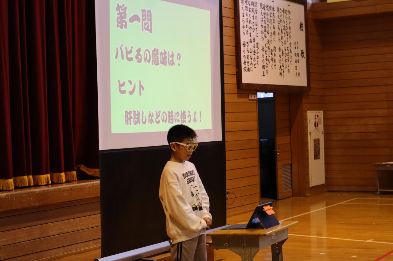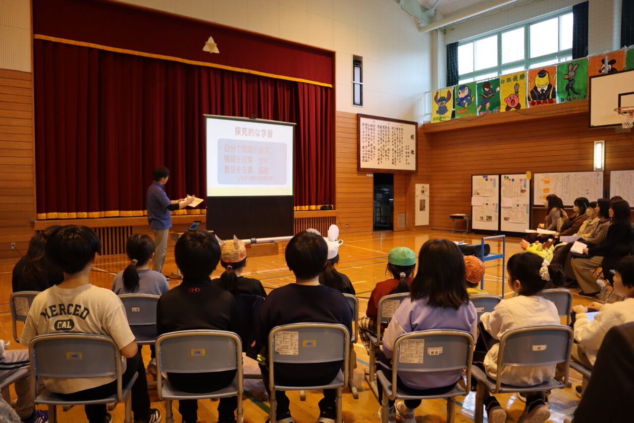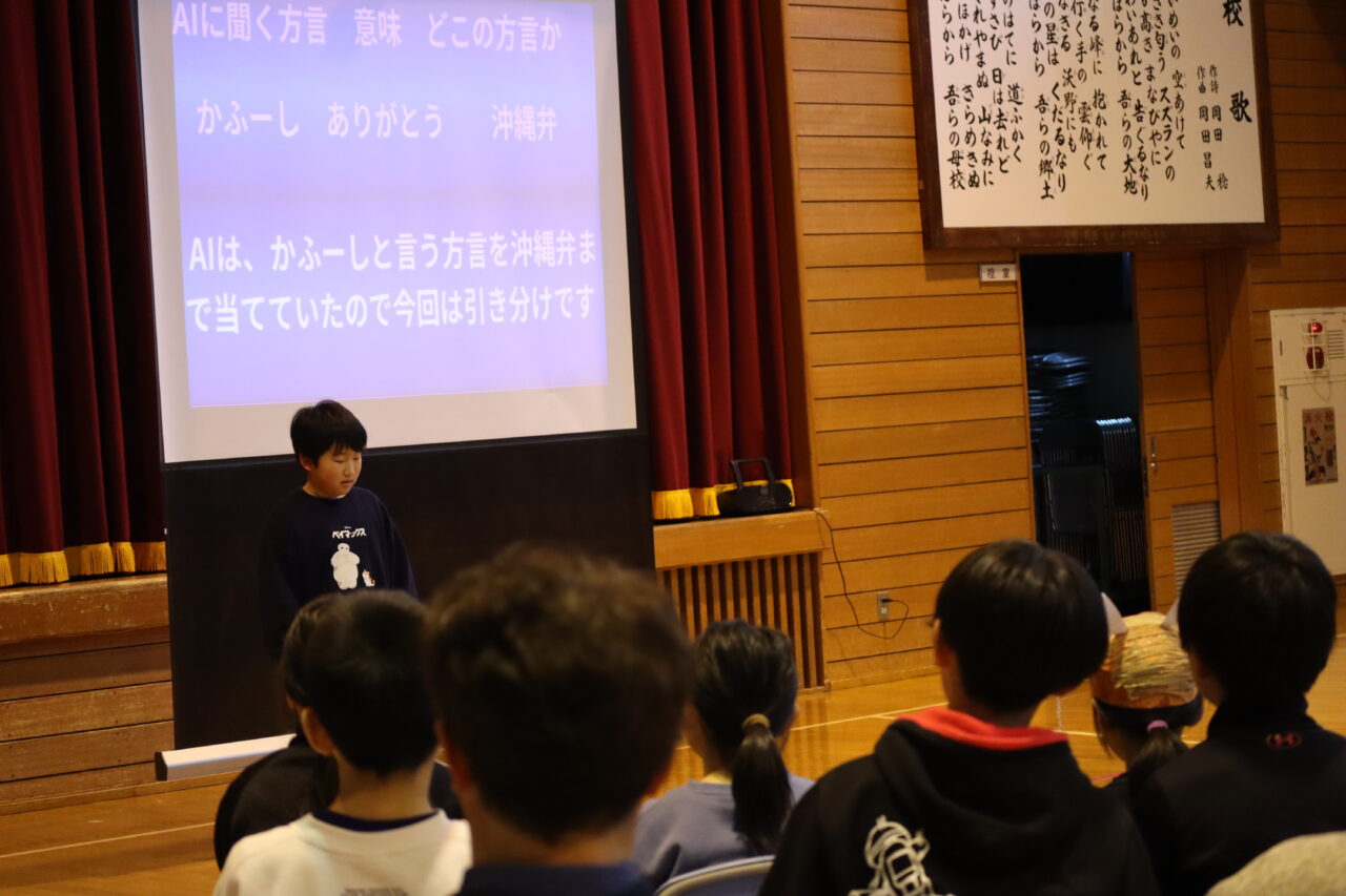 地域公開参観日(通明小) 投稿日 2025年12月4日 著者 通明小学校 カテゴリー 探究教育 カテゴリー 通明小学校 令和7年12月3日(水)に、地域公開参観日を実施いたしました。今回は、各学年が取り組んできた探究学習の成果を発表しました。中学年は日本の歌から想像したイメージをイラストなどにまとめて発表し、低学年は動物について調べた内容をクイズ形式にして理解を深めました。高学年は方言をテーマに、クイズやAIとの対決、コントなどを交えた工夫を凝らした発表を行いました。この学習を通じて、子供たちは確かな成長を見せています。引き続き、皆様の温かいご支援・ご協力をよろしくお願い申し上げます。