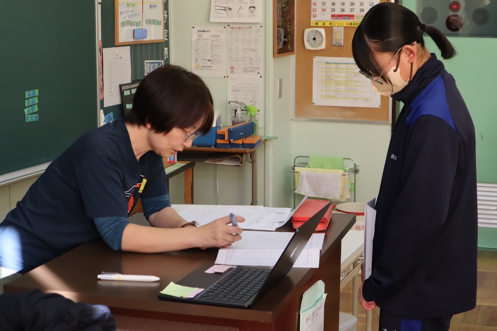 教室では、先生からフィードバックをもらっている生徒の姿がありました