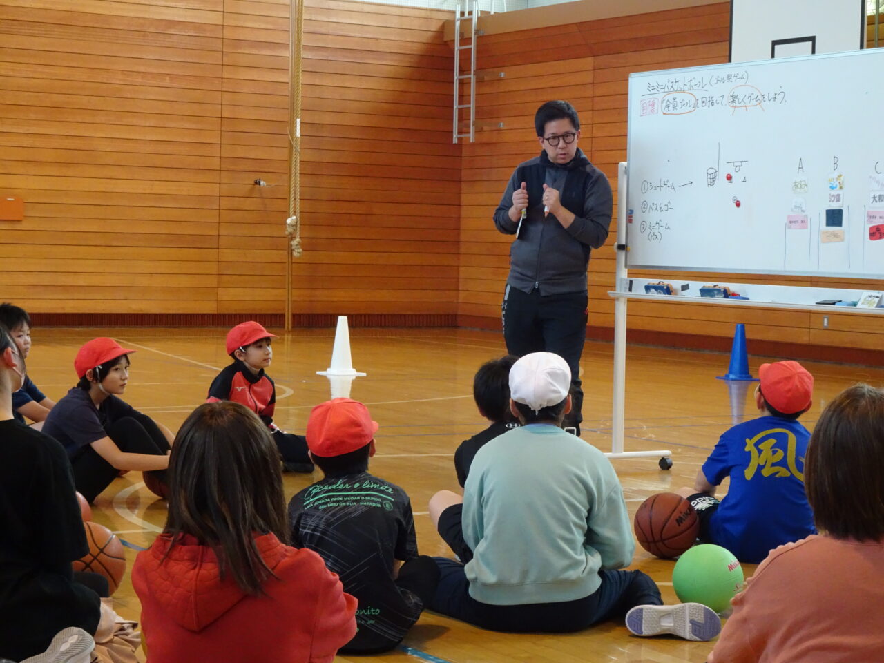 「バスケット 親子でゲーム 楽しいな」 投稿日 2025年12月5日 著者 笹川小学校 カテゴリー ニュース カテゴリー 笹川小学校 木曜日に参観日がありました。今回は全校でバスケットをしました。シュートゲームをしたり、パス&ゴーゲームをしたり、ミニゲームをしたりしました。お母さん方も上手で、親子で楽しいひとときとなりました。保護者の皆さん、参観ありがとうございました。