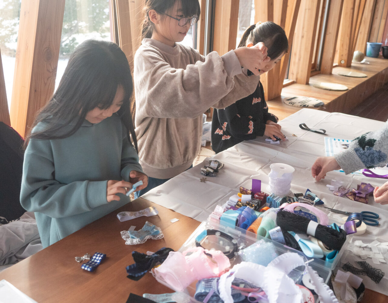 高校生が子どもたちといっしょに作品づくり 〜「Creator’s Day」 投稿日 2025年12月8日 著者 鹿追高等学校 カテゴリー 鹿追高等学校 鹿追高校の行う探究授業の一環で、子どもたちに自分の作品を作ってもらうイベント「Creator’s Day」が町内の「れんがの家」:で開かれました。イベントを主催したのは3人の鹿追高校生。iPadを利用したイラスト制作、リボンづくりなどに分かれ、高校生のアドバイスのを受けながら思い思いの作品づくりを楽しみました。