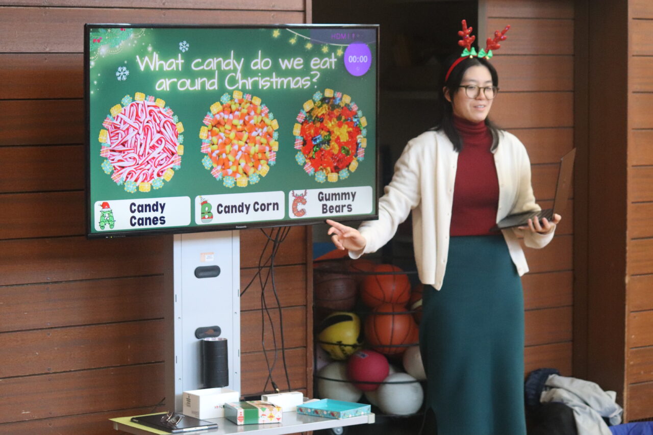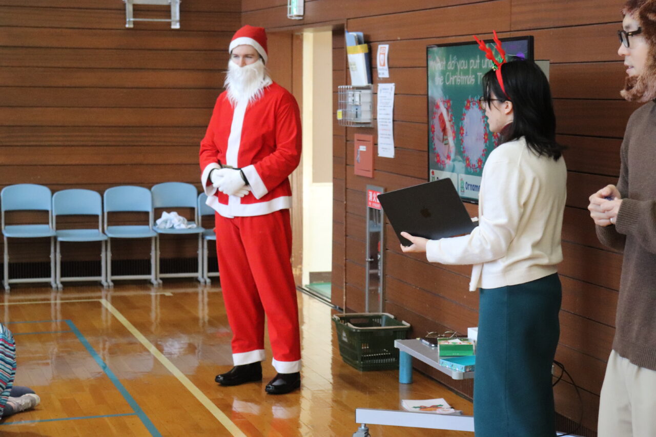 待ち遠しい 今からくつ下 準備しよ 投稿日 2025年12月18日 著者 瓜幕小学校 カテゴリー 瓜幕小学校 カテゴリー 英語教育 12月18日(木)に外国語の授業で「クリスマスパーティー」が行われました。グループに分かれてクイズを行ったり、クリスマスにちなんだワードを使ったフルーツバスケットをしたりして楽しい時間を過ごしました。さらに今日はいつもの先生方に加え、ゲストとしてサンタクロースも来てくれて、クリスマスムード満載のひと時となりました🎄🤶🪅