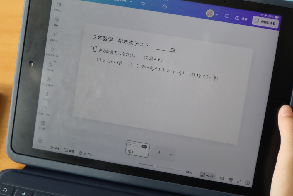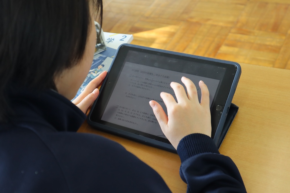 定期テストがない我が校だからこそ、2年生が「自分が作るなら…」と学年末テスト作成に挑戦。問題をひねり出しながら「あ、この公式、こういう意味だったのか!」と、理解が深まります。気分は数学科教師です。