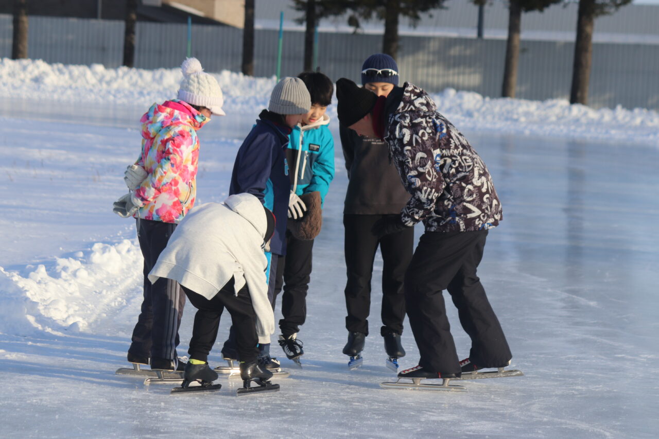 今日からスケート授業が始まりました。瓜幕スケート協会の方々が昼夜を問わずに尽力していただいたリンクは、凹凸が全くないとても素晴らしい状態でした!小さい頃からスケートに慣れ親しみ、少年団で毎日練習している子もいれば、山村留学で今年初めてリンクに乗る子もいるのが瓜幕地区の大きな特徴です。大会の入賞や自己ベストの更新を目指して創意工夫していることも、その滑りを手本にしながら、どうすれば自分も少しでも近づけるのかと考えることも、全て探究的な学習と言えるでしょう。来週からは全校で一斉にスケート授業を行なっていきます。寒さと足の痛みに負けずに、それぞれの目標に向かって頑張ってくれることを楽しみにしています!