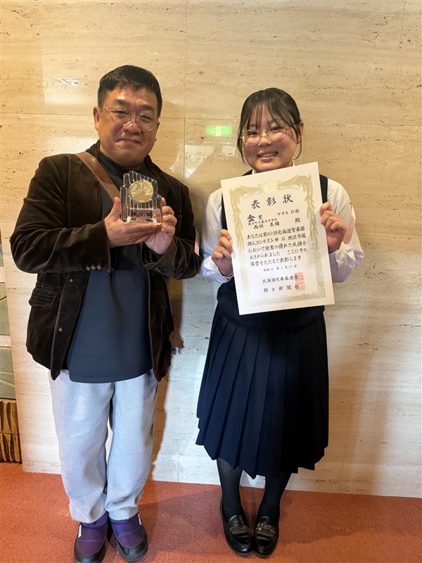 今日は、北海道大会の報告と全国大会への挨拶を兼ねて、町長室を訪れ、町長・教育長を前に堂々と意気込みを語ってきました。健康管理には十分注意して、自身の記録更新を目指し、フォームやペース配分などを「探究」しながら日々の練習を積み重ねていってほしいものです。全国大会での更なる飛躍に期待しています!