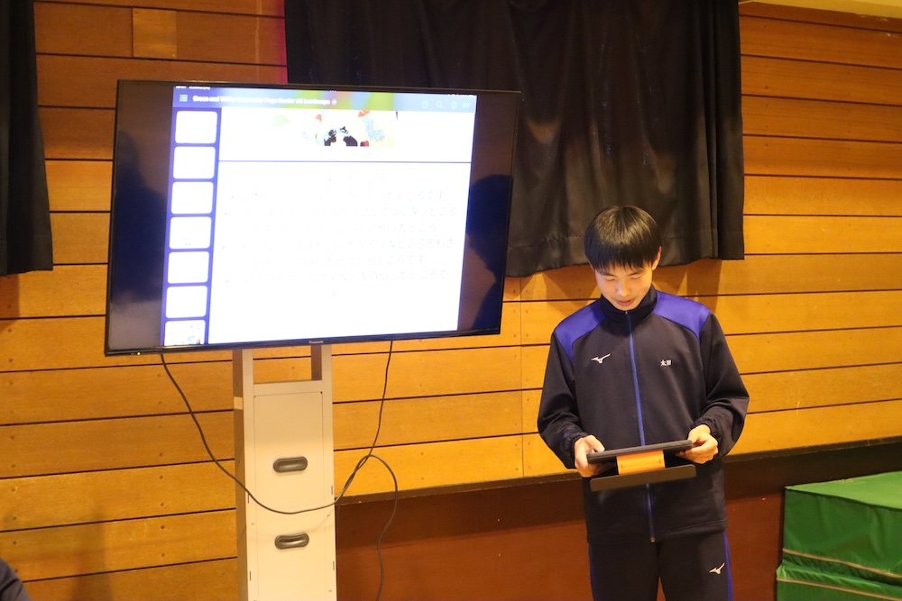 昨日、新入生説明会が行われました。中1生が、自分たちが今年度取り組んできた学びを小学校6年生にプレゼンしました。小6生のキラキラした瞳を前に、ウルトラマンと雷神が融合したシュールかつ情熱的な作品をどのようにしてつくったのか、学びを深めたのかを紹介する姿は、まさに新時代の幕開けでした。