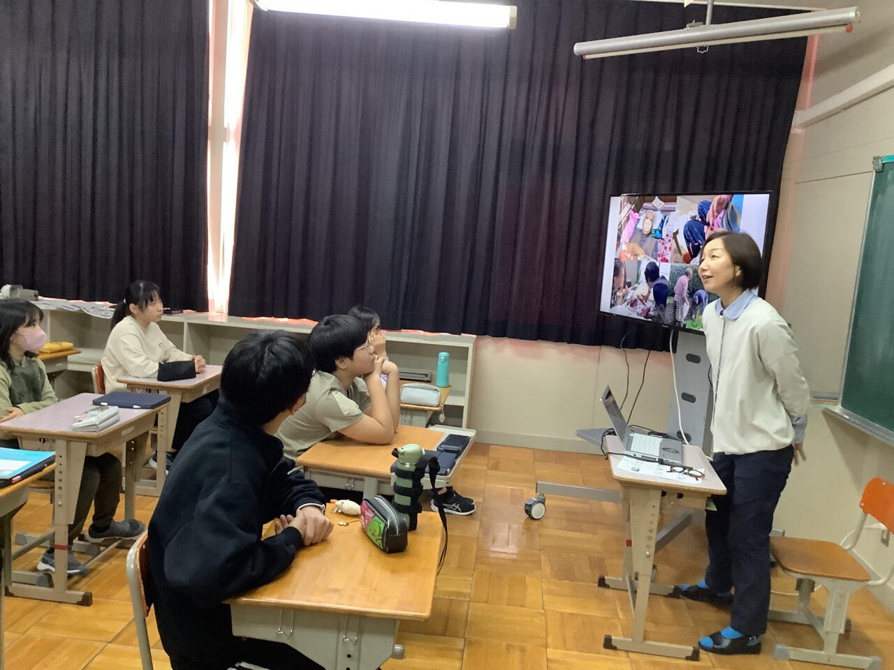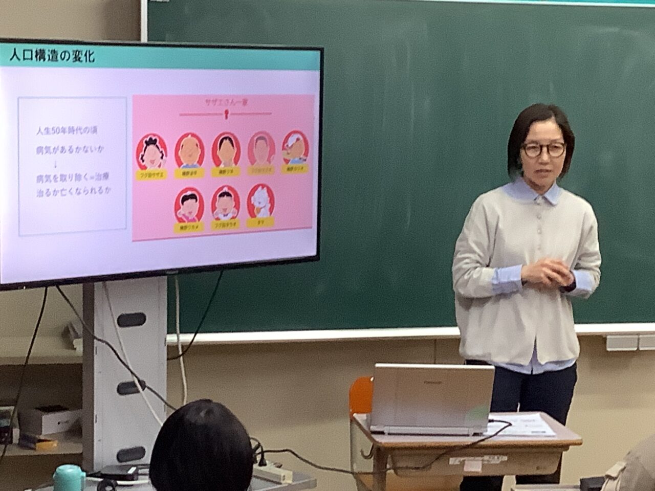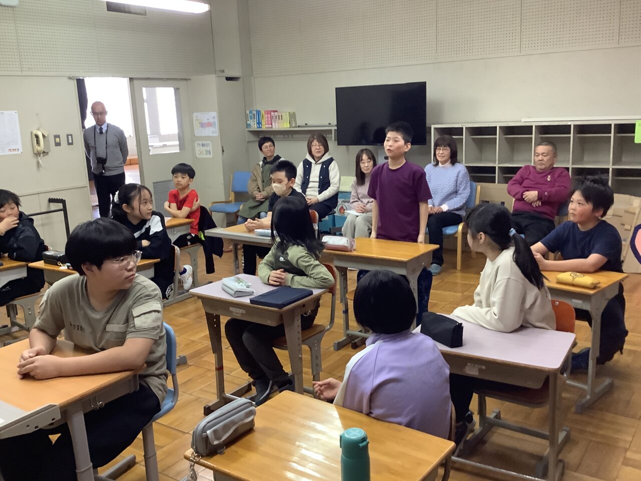 昨年12月4日に「認知症の世界」の第一人者の筧 裕介さんをお迎えし、認知症のひとの「ものの見え方」や「考え方」を中心に学習しました。今回、町の看護師「かしわのもり」の松山なつむさんをお迎えして、「認知症のひとに出会ったら何ができるか?」を子どもたちと一緒に考えました。初めに、前回学習したことを振り返りました。人の顔がわからなくなる「顔なし族の村」の話や、距離や方角がわからなくなる「二次元銀座商店街」の話など、子どもたちは筧さんの話をよく覚えていました。