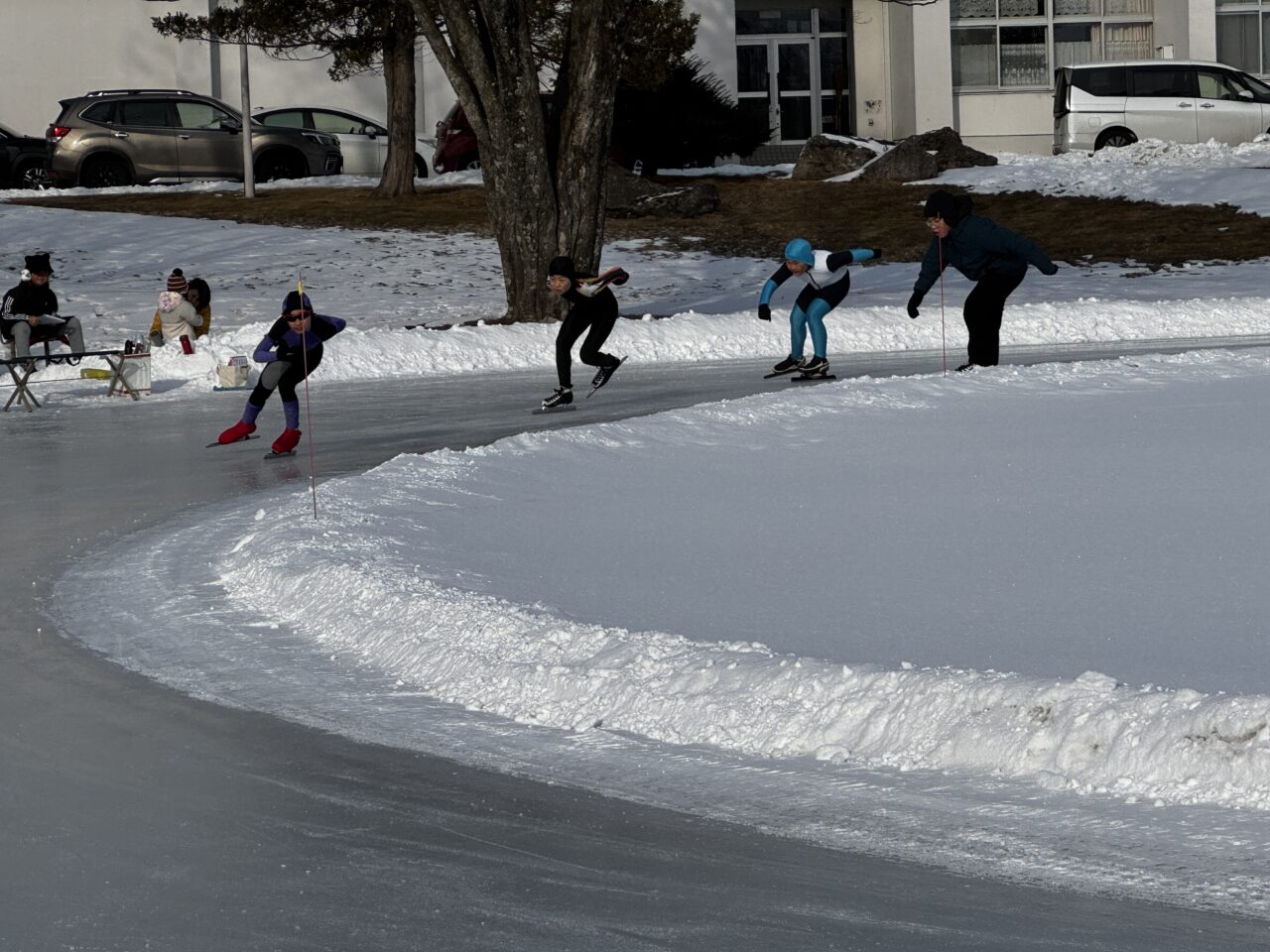 子どもたちがスケートを頑張れたのは、本人のがんばりはもちろんですが、保護者の皆さんの温かい声援、クッキーメダルを用意してくださったお母さん方、立派なリンクを造成・維持管理してくださったお父さん方、指導してくださった教職員や指導者の皆さん、多くの支えがあってのことだと実感します。本当にありがとうございました。そして、頑張った子どもたちをたくさん褒めてあげてもらえたらと思います。