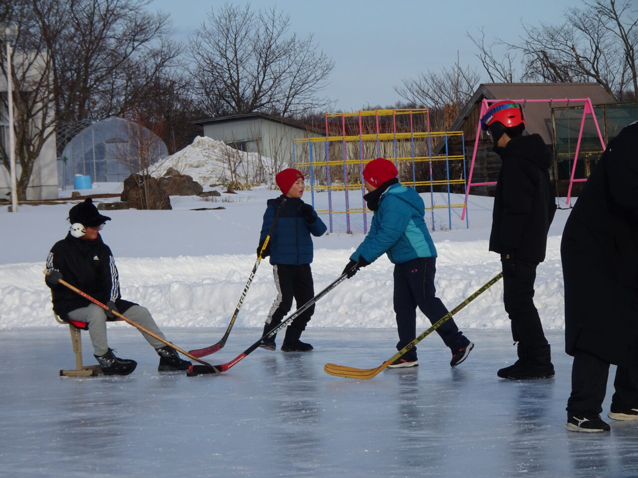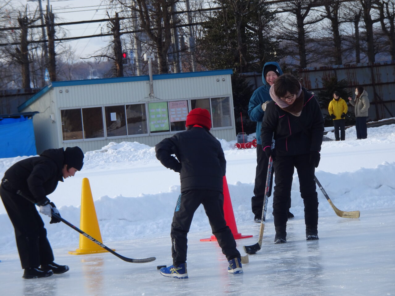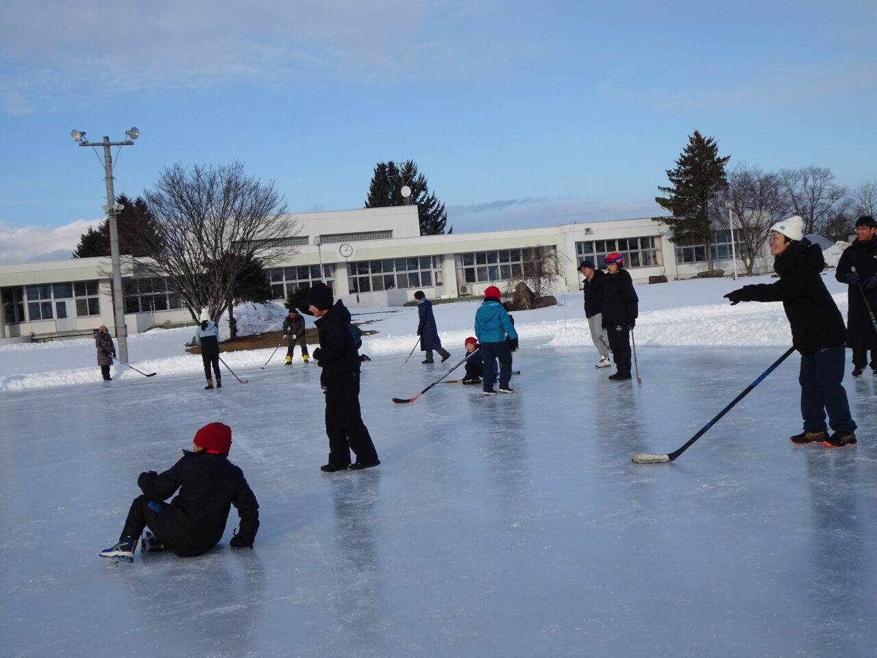 スケート記録会が終わった後はPTA主催レクのアイスホッケーを行いました。初めての子も多かったと思いますが、すぐに慣れて楽しんでいました。や教職員も一緒に混じって楽しいひとときを過ごしました。