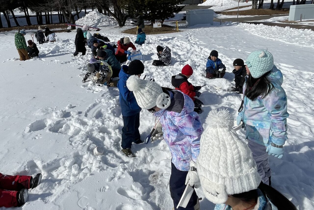 雪の結晶を観察しました(4年理科) 投稿日 2026年2月12日 著者 鹿追小学校 カテゴリー 環境教育 2月9日(月)にジオパークから金森さんを講師にお迎えし、4年生の理科「水のすがた」「冬の生き物」の学習で、雪の結晶を観察しました。 教室で事前学習を行ったあと、校庭の雪を掘り起こし、虫眼鏡を使って結晶の形を詳しく観察しました。雪の中では、地面に近いほど暖かいことがわかり、子どもたちは大変驚いていました。