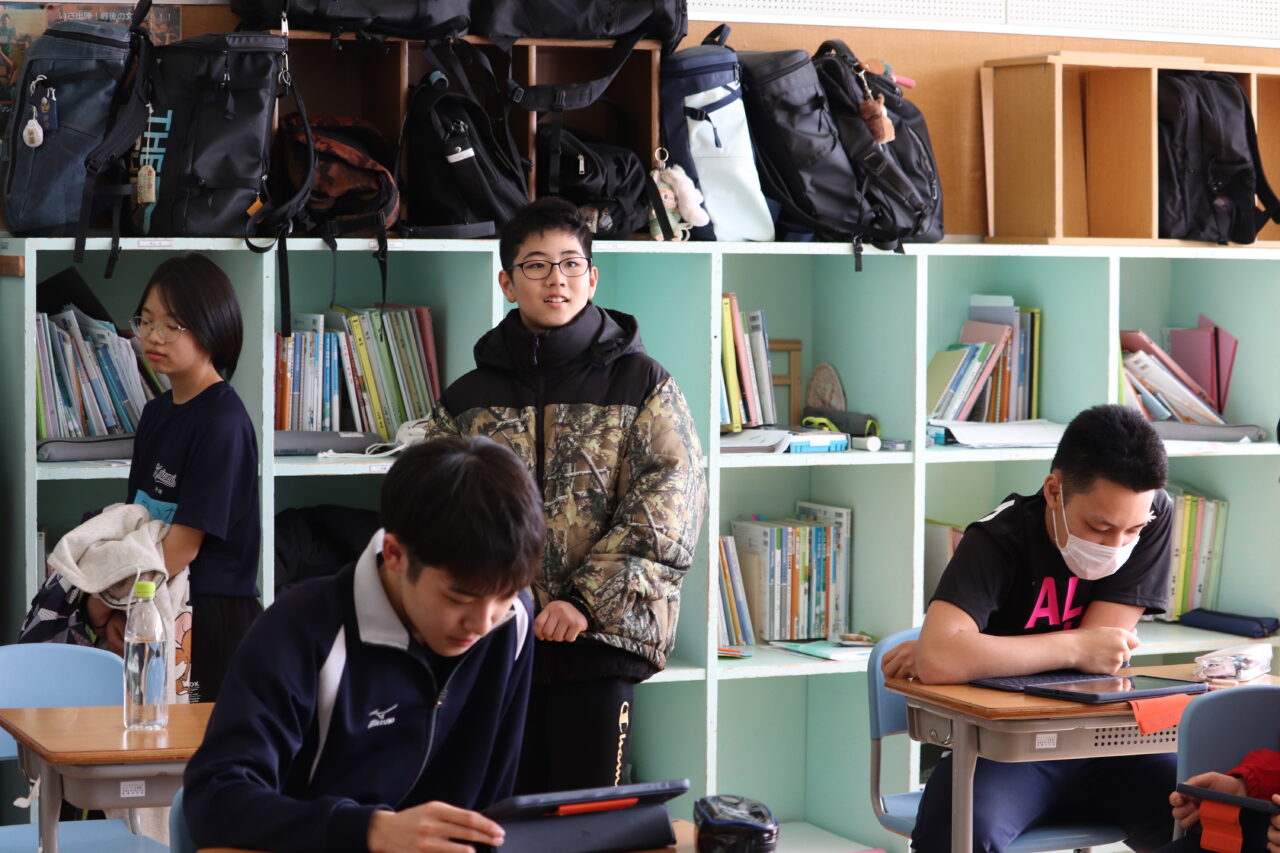 その後、中学校に移動し、授業や各教室の様子を見て回りました。去年まで同じ教室で一緒に勉強していたお兄さんお姉さんたちが大人っぽく見え、4月から自分たちも中学生になるんだという期待感が高まった1日となりました。
