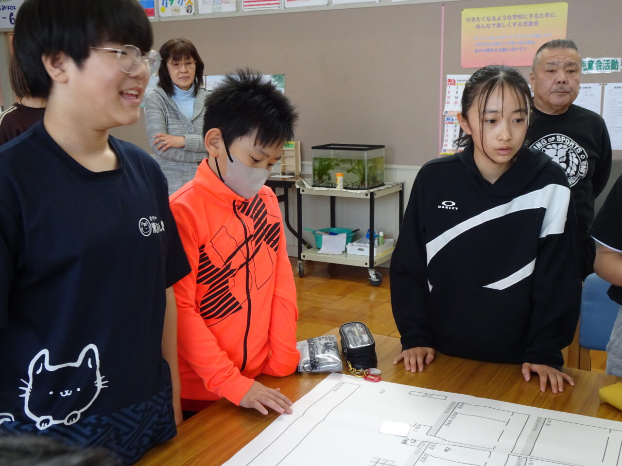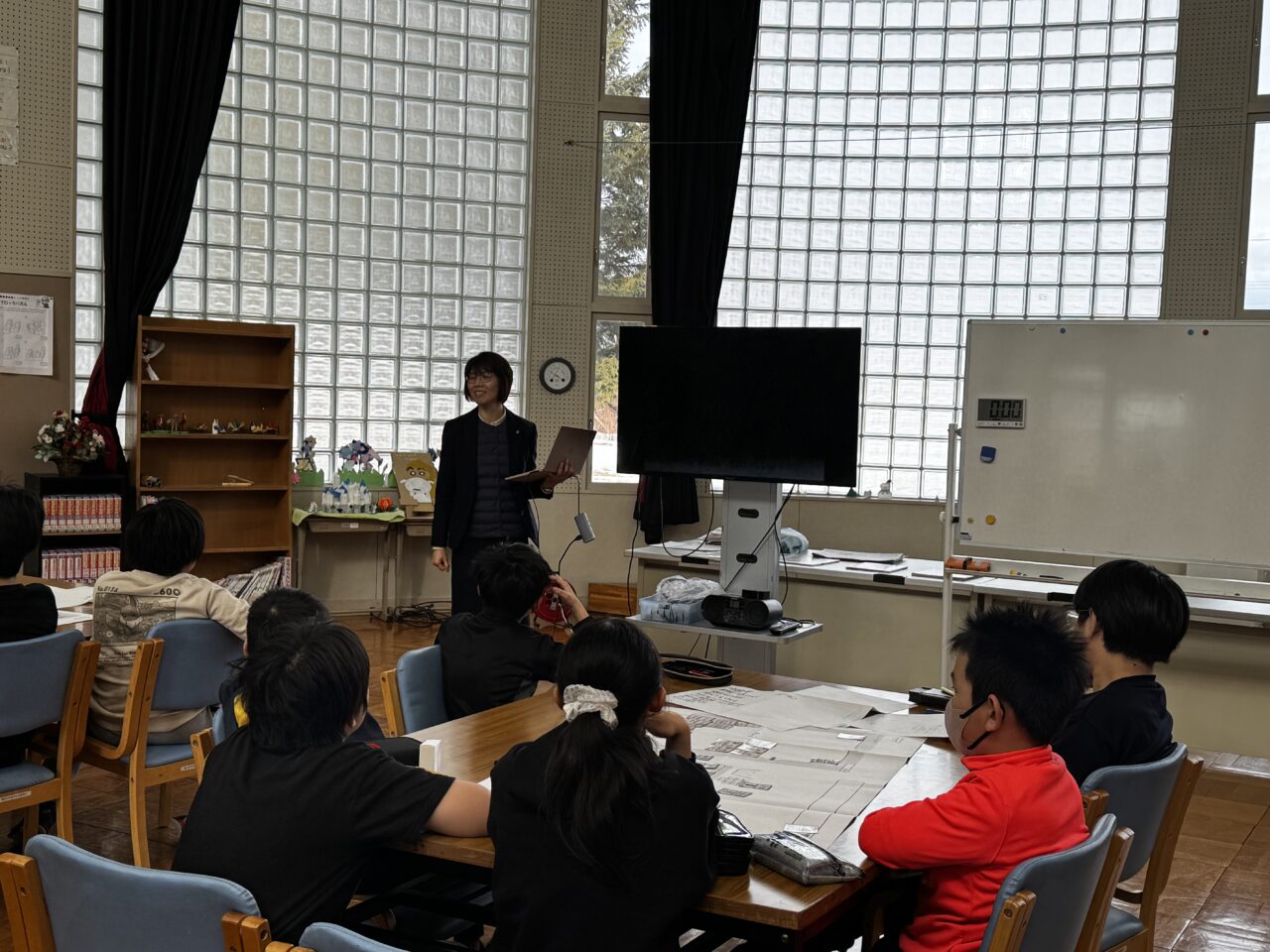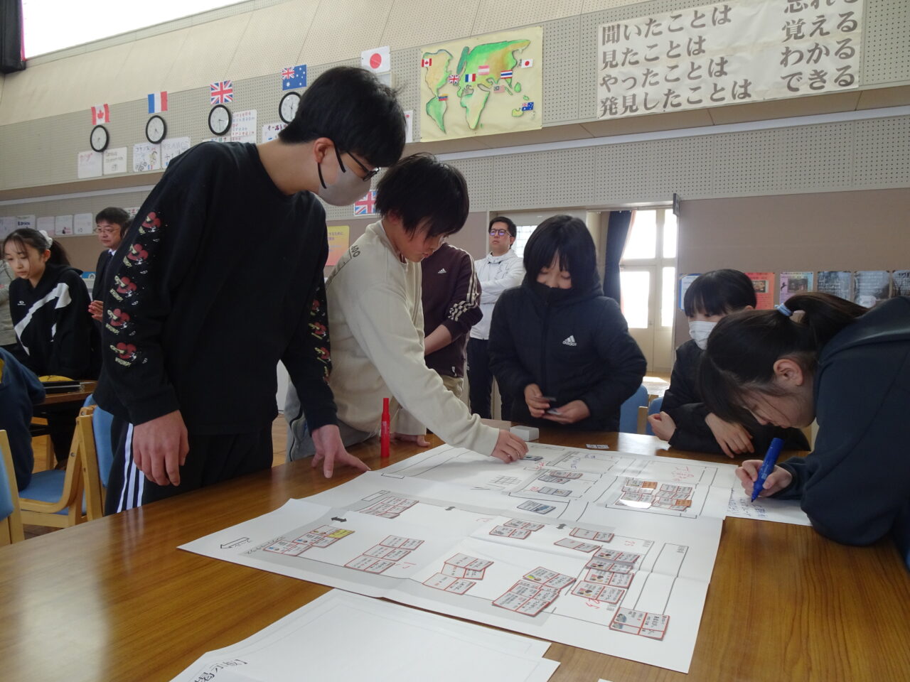 そして、避難所にはいろいろな方が次々とやってきます。連れの家族、足腰の弱った方のいる家族、風邪をひいている方のいる家族、インフルエンザに罹った方のいる家族、ペットのいる家族、次々とやってくる家族(カード)を、子どもたちはそれぞれの立場を考えながら、家族をどう振り分けたらいいのか、頭をフル回転させていたのが印象的でした。また、グループで話し合いをするときに、自分の意見を押し通すのではなく、仲間の意見を聞いて譲り合ったり、試行錯誤をして最適解を求めようとしたりして、協働的な探究の学びができていたのも立派でした。