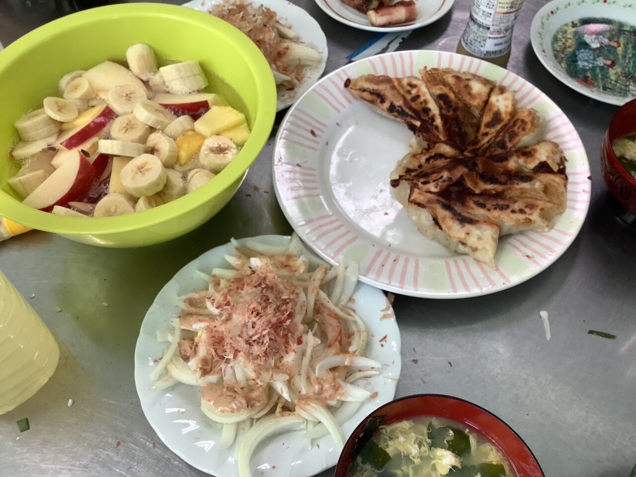 ある班は美味しい手作り餃子にワイルドオニオンサラダ、またある班はキャベツのワイルド千切り、さらには厚切り人参入り味噌汁など、バラエティに富んだ(?)メニューに舌鼓を打っていたようです。