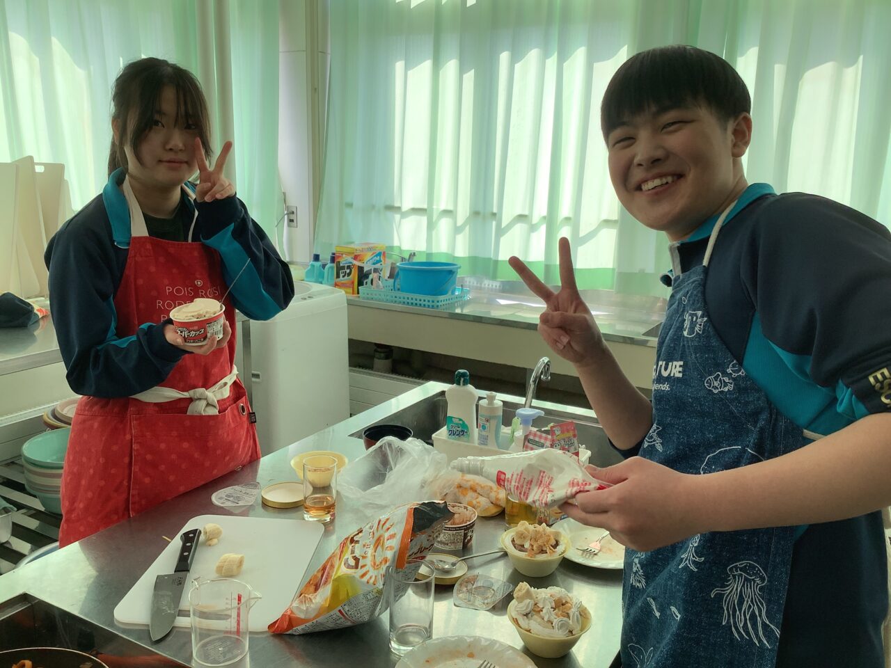 しかし…朝食→調理実習ときて、給食は食べられるのでしょうか?今日も美味しい「肉うどん」「いもだんご」「スライスパイン」が待ってますよ〜!