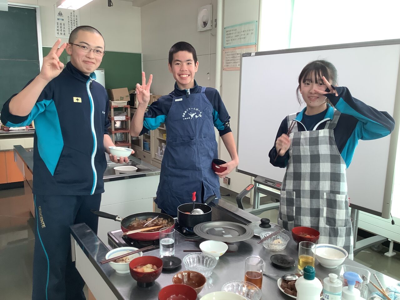 毎日、みんなのことを考えて食事を準備してくれている家族への感謝、少しは感じることができたでしょうか。調理のスキルや献立への思考を深めることはもちろんですが、日常の生活へと繋げて考えることができれば、最高の授業でしたね!