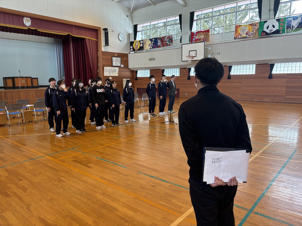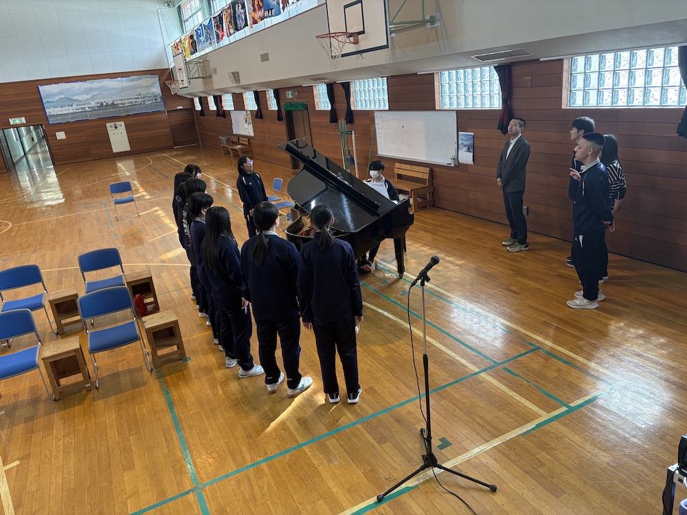 三年生が「旅立ちの歌」を練習!感動的なハーモニーが体育館に響いていますが、それを見守る担任の背中が……。哀愁漂いすぎて、まるで昨日の給食のミートスパゲティを皿ごとひっくり返した人のような切なさです。旅立ちへの期待と、去りゆく寂しさが、担任の背中に凝縮されております。