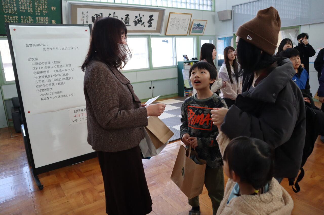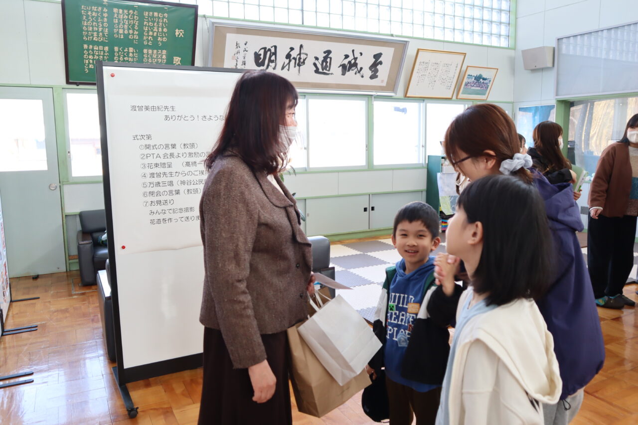 出発式(通明小) 投稿日 2026年3月27日 著者 通明小学校 カテゴリー ニュース カテゴリー 通明小学校 令和8年3月27日(金)、今年度で通明小を離任される先生の出発式を行いました。卒業生をはじめ、たくさんの方にお越しいただき、心より感謝申し上げます。新たな門出を迎えられる先生の、これからのご健康とご活躍をお祈りいたします。本当にありがとうございました。