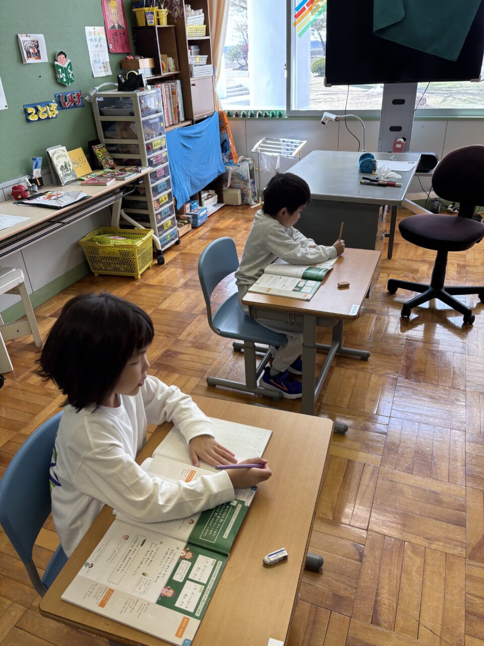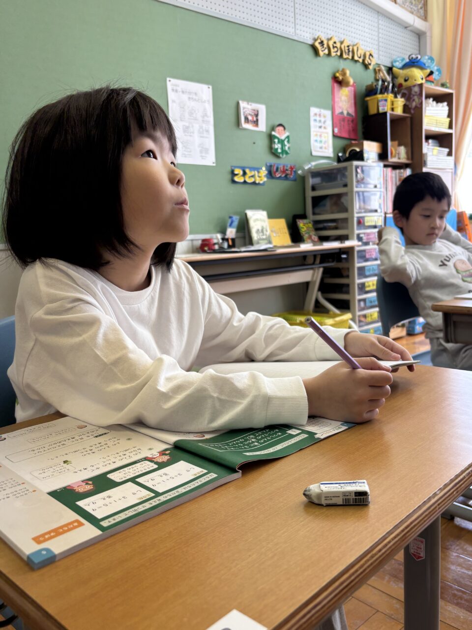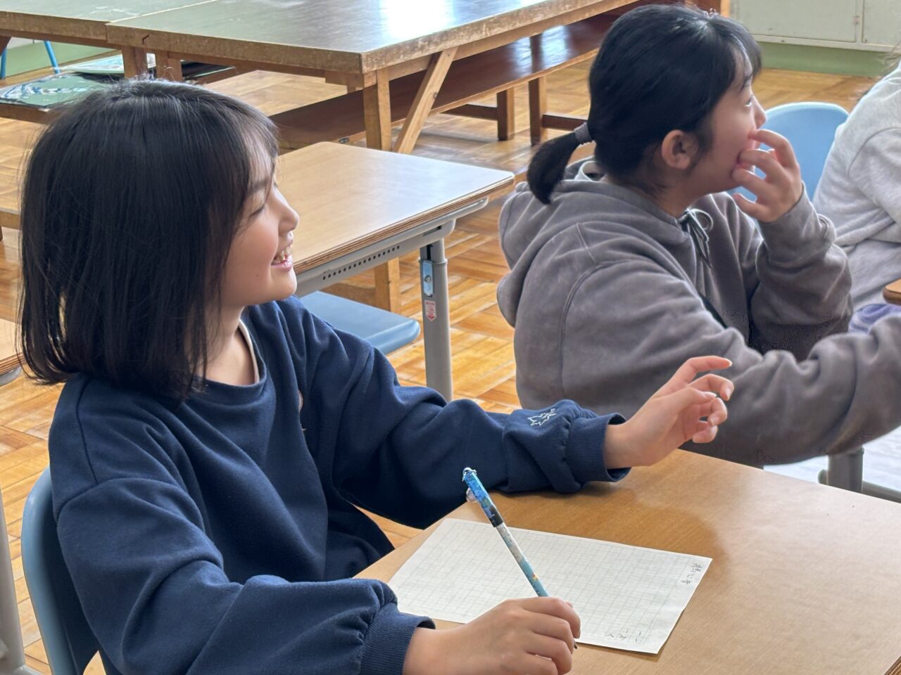 ホームルーム活動では、2年生が3・4年生と一緒に活動し、学年を越えた関わりの中で学びを深めています。授業や活動の中には、自分で考え、話し合い、学びを広げていく探究的な取り組みも見られます。