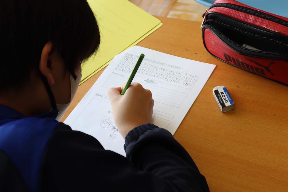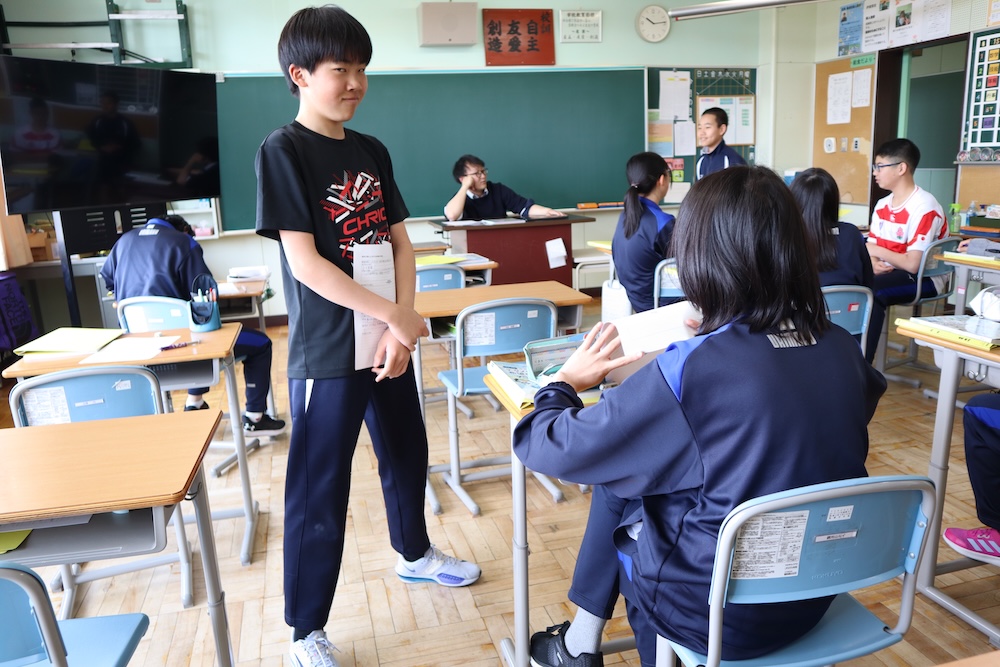 教室を覗くと、2年生が何やら熱心に学んでいます。ある者はタブレットを叩き、ある者は「うーん」と独り言。対話と個の探究が融合。結局、何を学んでいたのかは最後まで不明でしたが、あの真剣な眼差しは一流の学習者です。