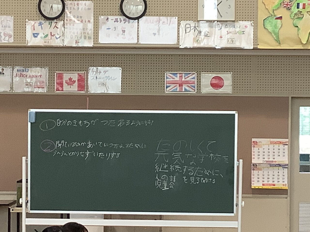 22日(水)5時間目に児童会活動が始まりました。児童会二役から「楽しくて元気な学校を継続するために、人の話を見て聞ける児童会」というテーマの発表がありました。今日は前期の計画を立てる日です。「いままで行ってきたことを続けるだけでなくて、周りに大人もたくさんいるからいろいろなアドバイスを聞きながら、新しいことにチャレンジしてみるのも大事なことだよ」と担当の先生から話を聞いた後、始めました。